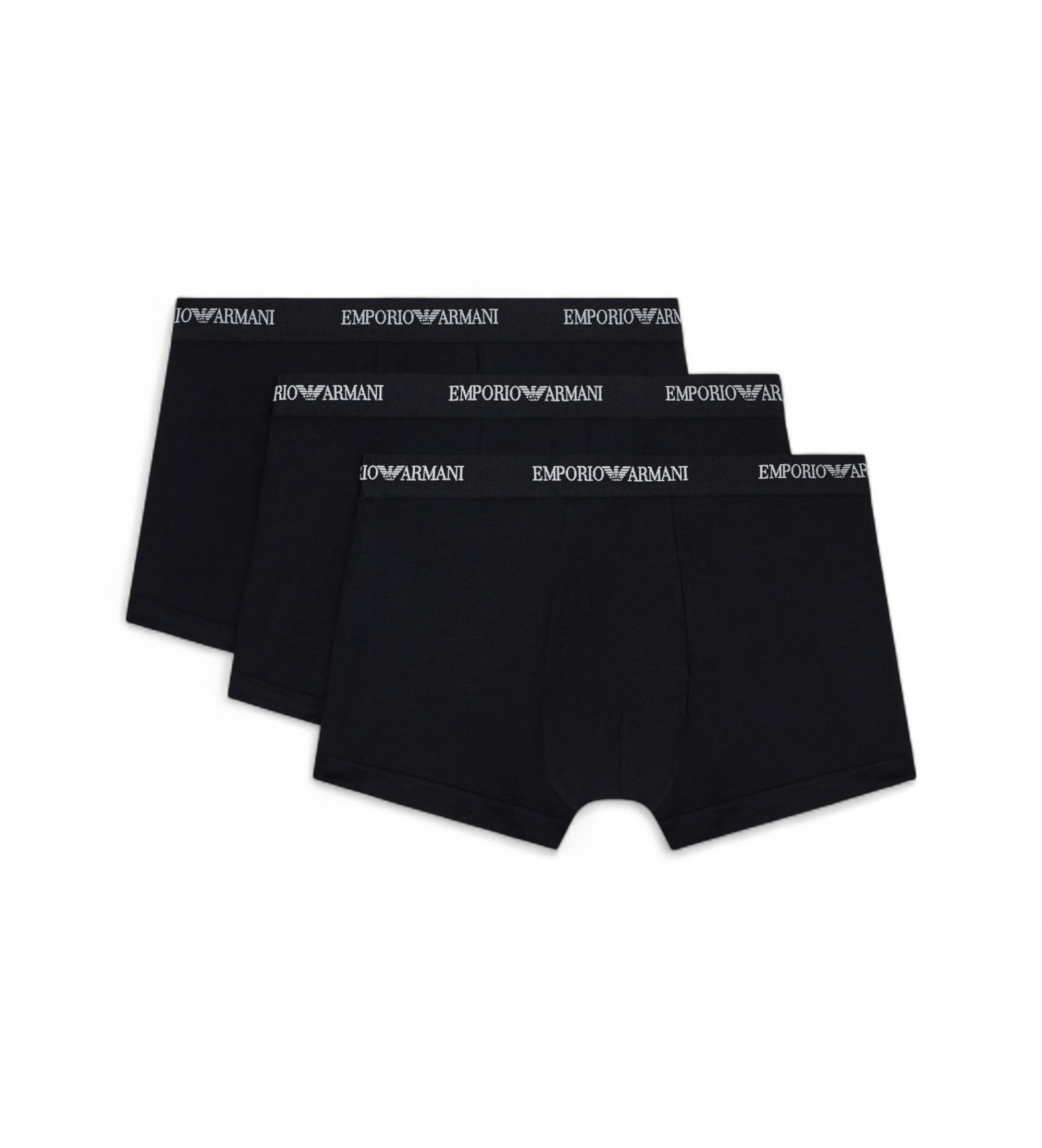 Paket treh bokseric iz raztegljivega bombažnega džersija. Elastičen pas z logotipom Emporio Armani.
