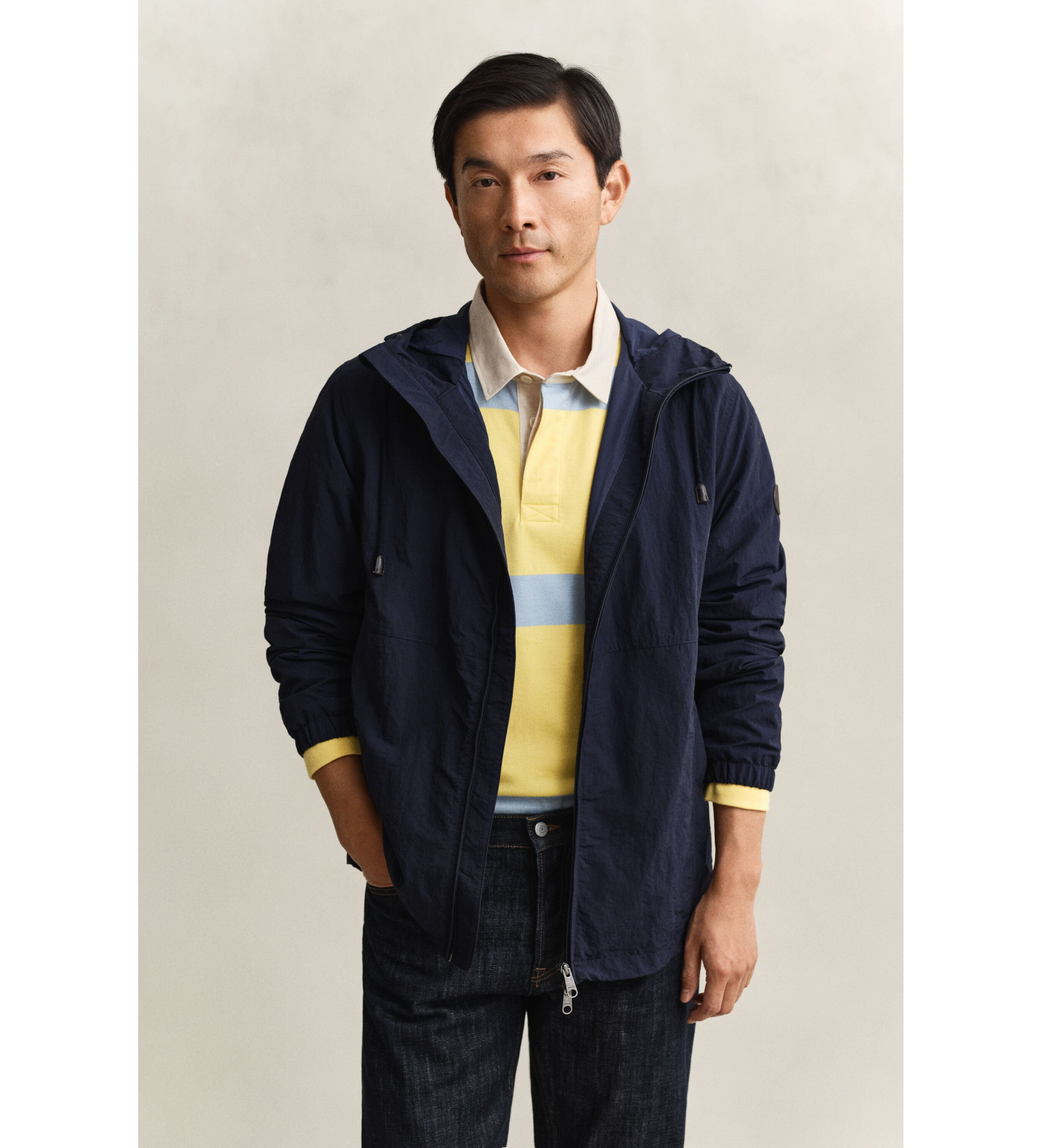 Ta vetrovka znamke Gant je popolno oblačilo za toplejše mesece. Izdelana je iz reciklirane sintetike in vodoodbojne obdelave ter združuje funkcionalnost in trajnostno zavezanost v vsakdanjem, vsestranskem dizajnu.