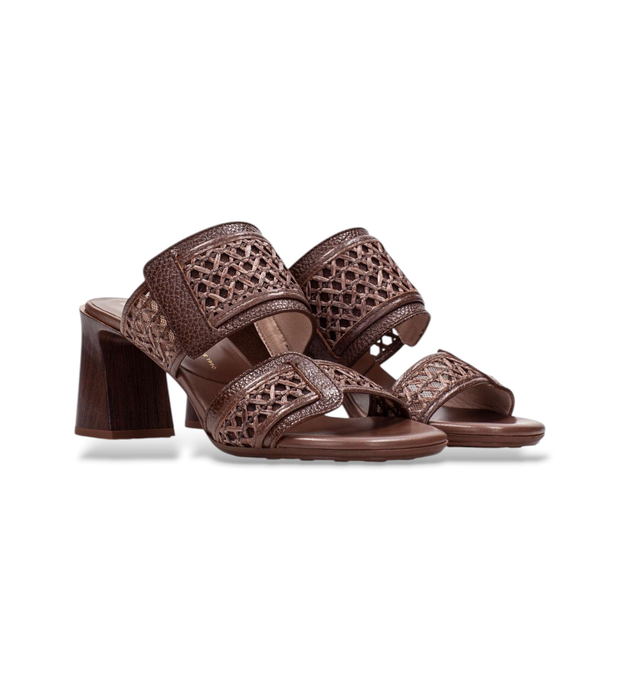 Mule v sodobnem in poletnem slogu, ki je zaradi kombinacije materialov in uravnotežene silhuete zasnovan tako, da zagotavlja stabilnost, udobje in naravni dotik.