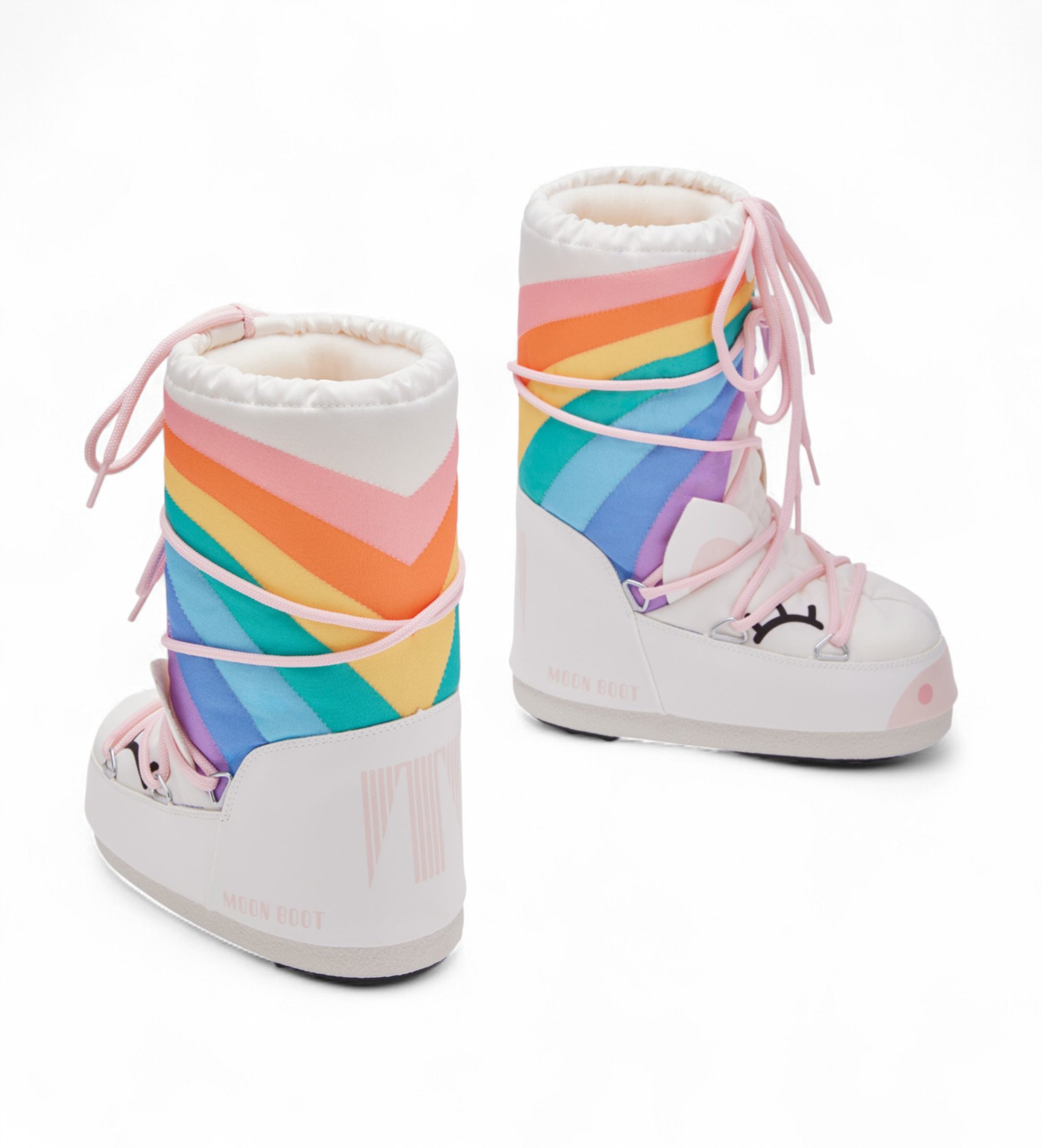 Neil Armstrong je morda naredil majhen korak za človeka, vendar je originalni lunin škorenj naredil velik korak za obutev. Neponovljivi model Icon, ki ga je navdihnil pristanek na Luni leta 1969, temelji na visokotehnološki opremi astronavtov. Ta par odlikujejo dobra izolacija, lahek vmesni podplat in priseski na podplatu iz nazobčane gume, ki zagotavljajo oprijem kot iz tega sveta. Mavrični zgornji del, oči in ušesa oživijo enoroga.