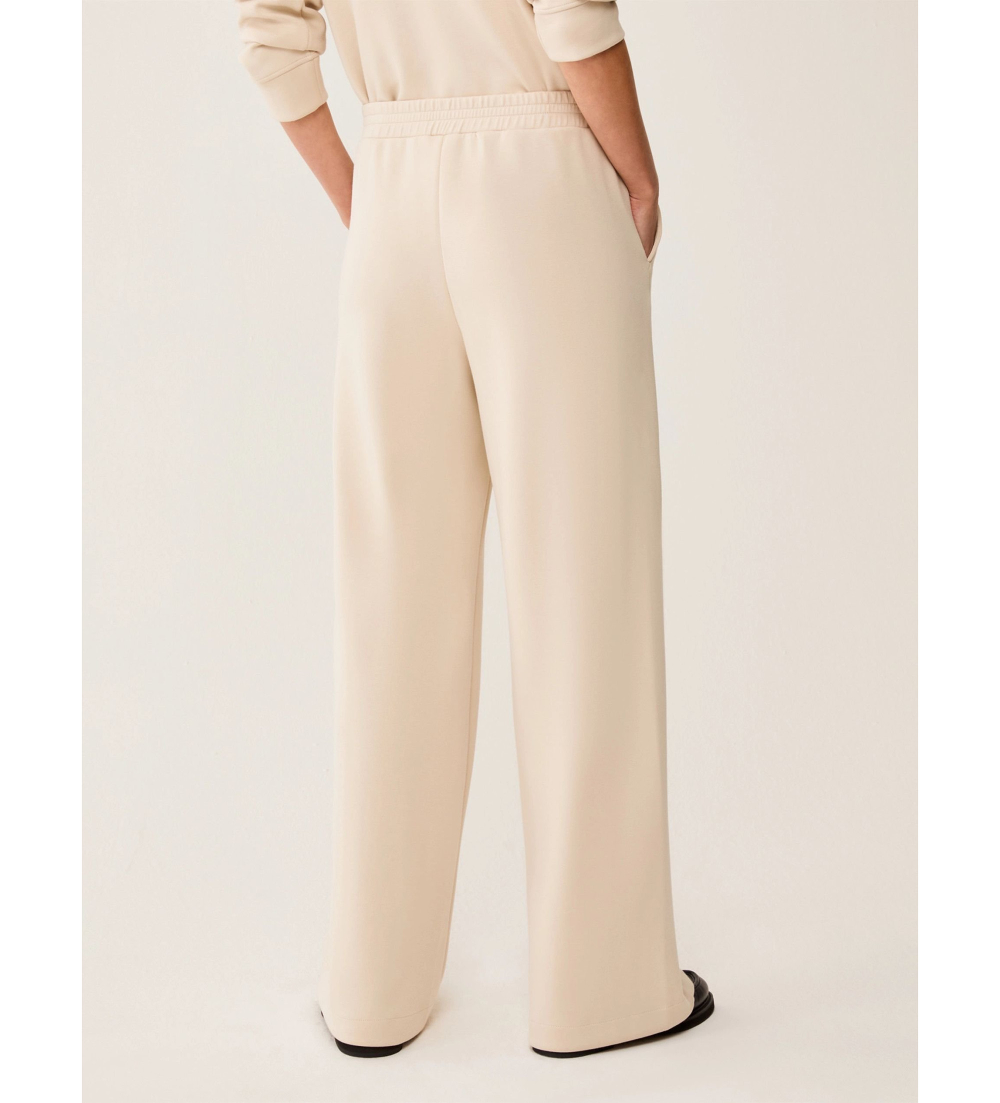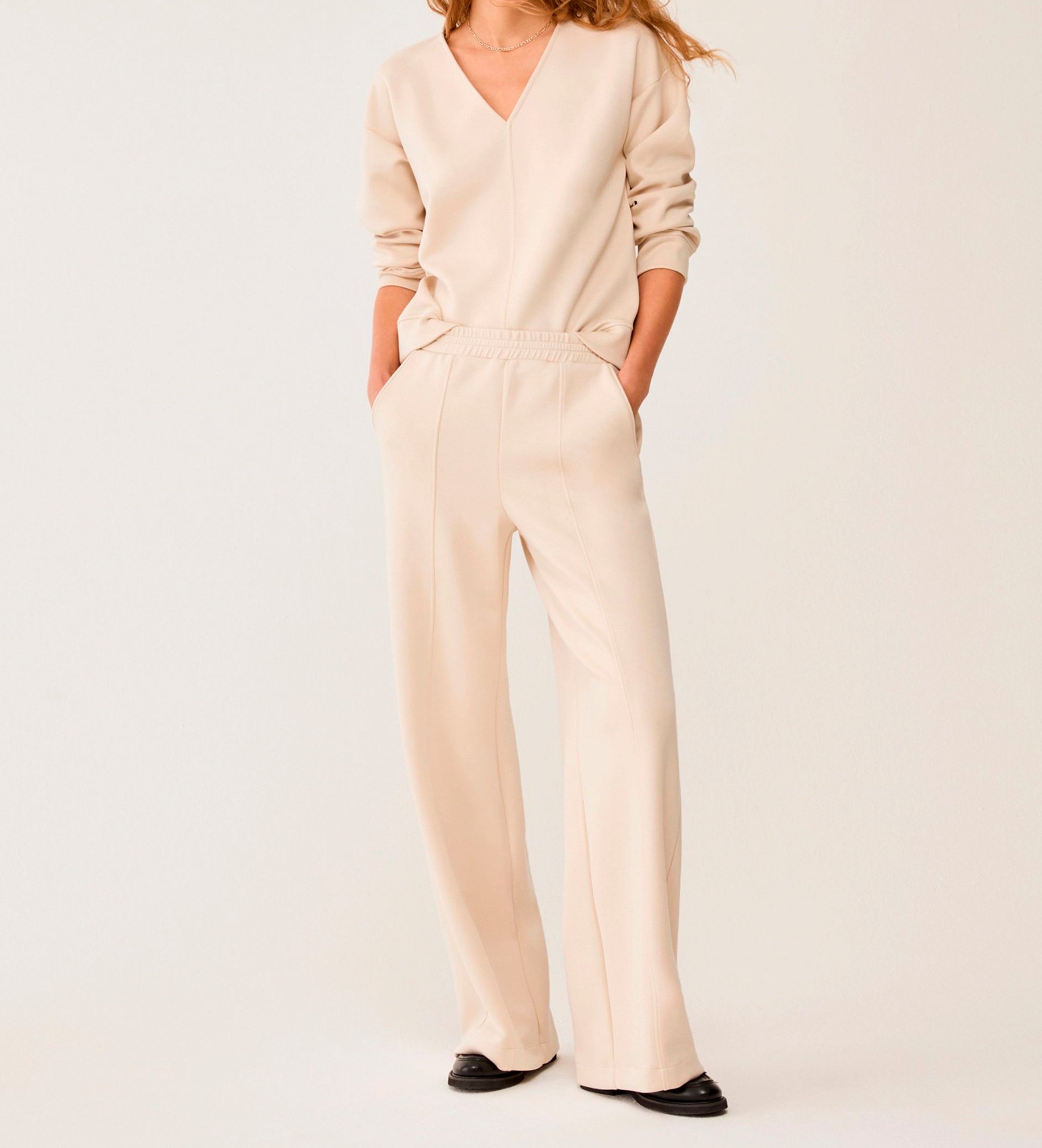 Tekaške hlače, navdihnjene s športnim slogom, združujejo udobje sproščenega kroja z eleganco kroja palazzo. Vsestranski dizajn je idealen za mestni videz ali videz za konec tedna.