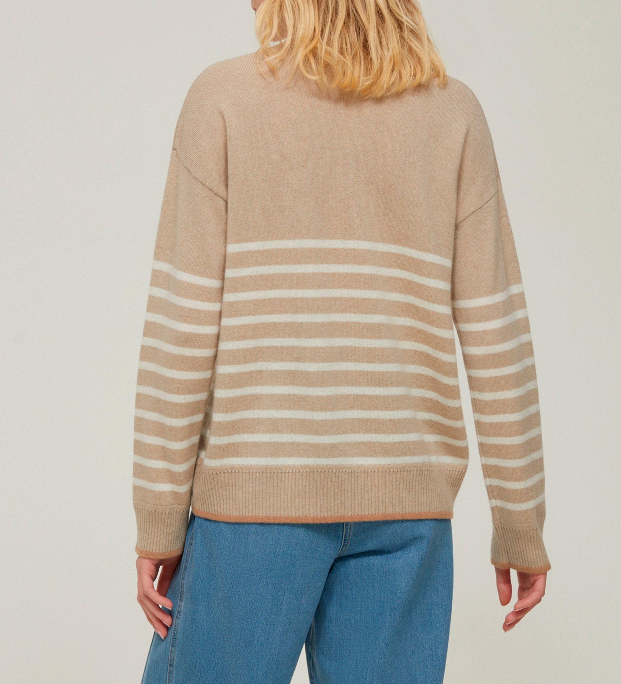 Pulover iz mešanice volne in kašmirja, ohlapnega kroja, ki zagotavlja sproščeno, zavito silhueto. Mehak in lahek model združuje udobje in eleganco z brezčasnim dizajnom, ki je idealen za dopolnitev sezonskega videza.
