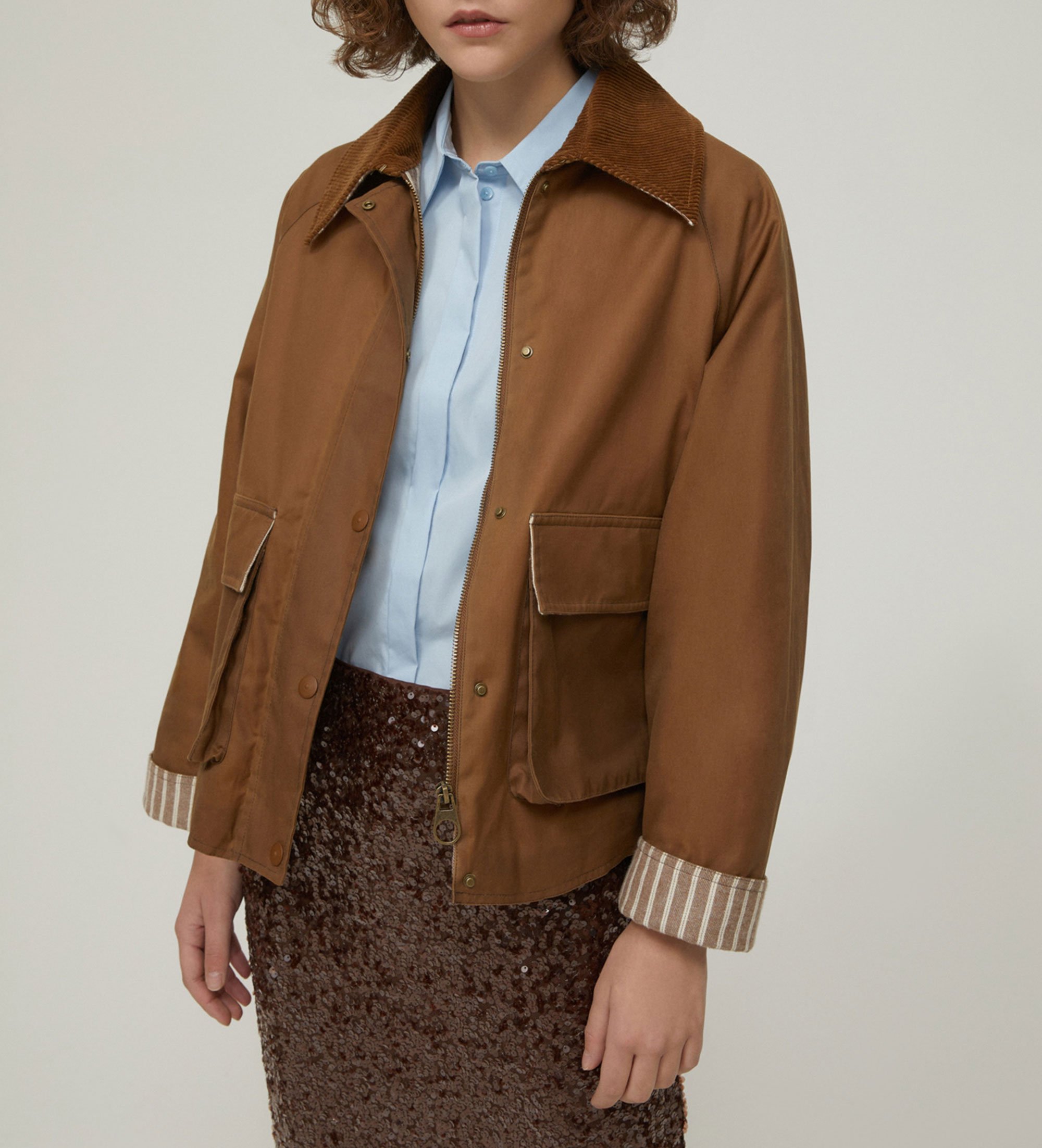 Ta jakna iz voskanega bombaža, ki je navdihnjena z ikoničnimi vrhnjimi oblačili britanskega podeželja, je kot nalašč za priložnostne kombinacije, a se odlično poda tudi h klasičnim in elegantnim kosom.