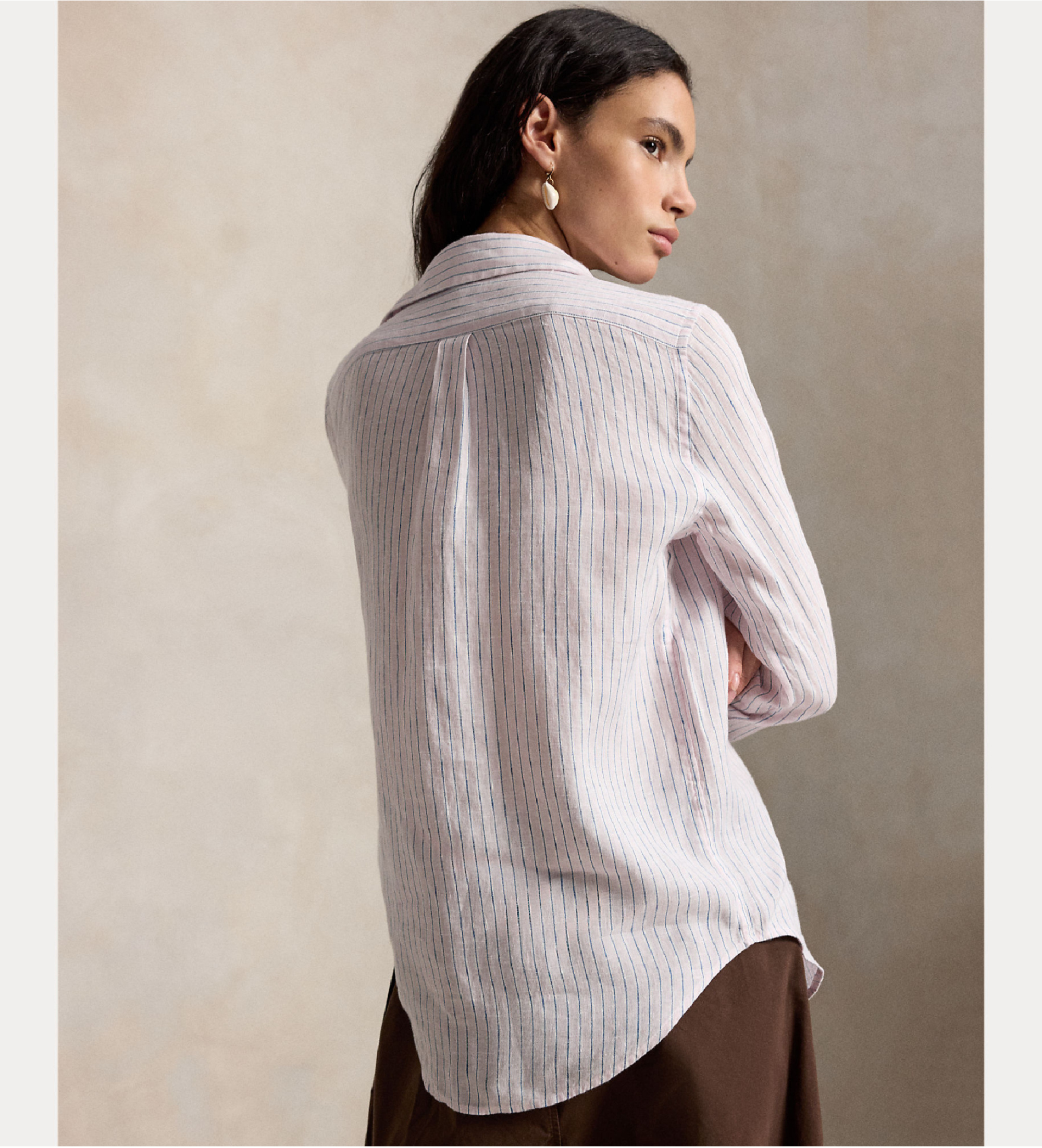 Klasično krojena srajca iz čistega lanu z barvnimi črtami in subtilnimi razkošnimi detajli. Brezčasen kos, ki združuje naravno svežino lanu s prefinjenimi zaključki, značilnimi za blagovno znamko Ralph Lauren.