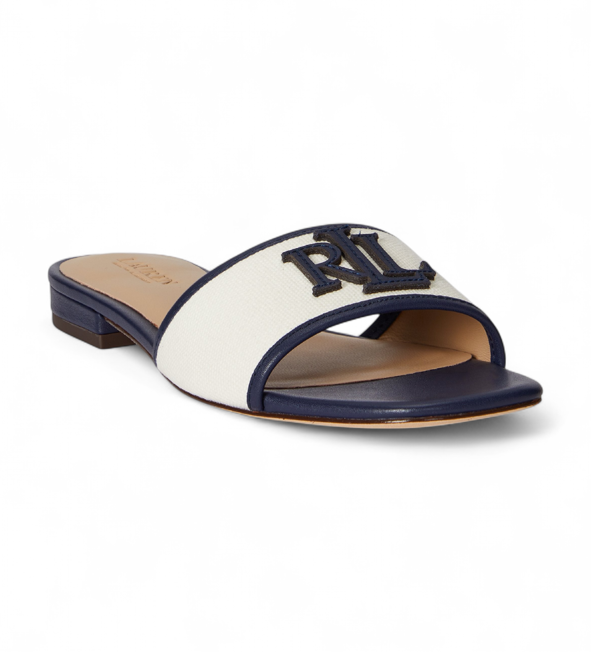 Sandali Everley iz bombažnega platna in mehkega usnja nappa so oblikovani s kvadratnim prsti in logotipom "LRL" na zgornjem delu. Oblazinjen, z usnjem obložen podplat nudi razkošen občutek in zagotavlja celodnevno udobje.