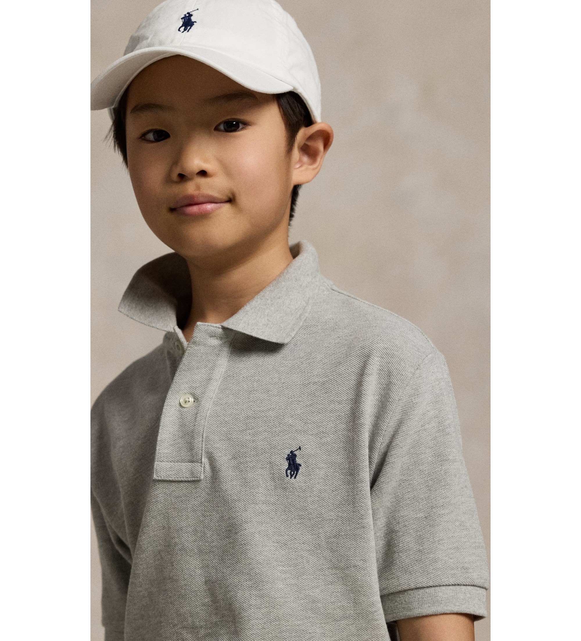 100 % bombaž.Velikost medium ima sprednjo dolžino telesa 23ľ" in zadnjo dolžino telesa 24ľ".Na levem prsnem košu je izvezen podpisni kuža.Rebrasti polo ovratnik.Zaponka z dvema gumboma.Kratki rokavi z rebrastimi manšetami.Teniški rep.