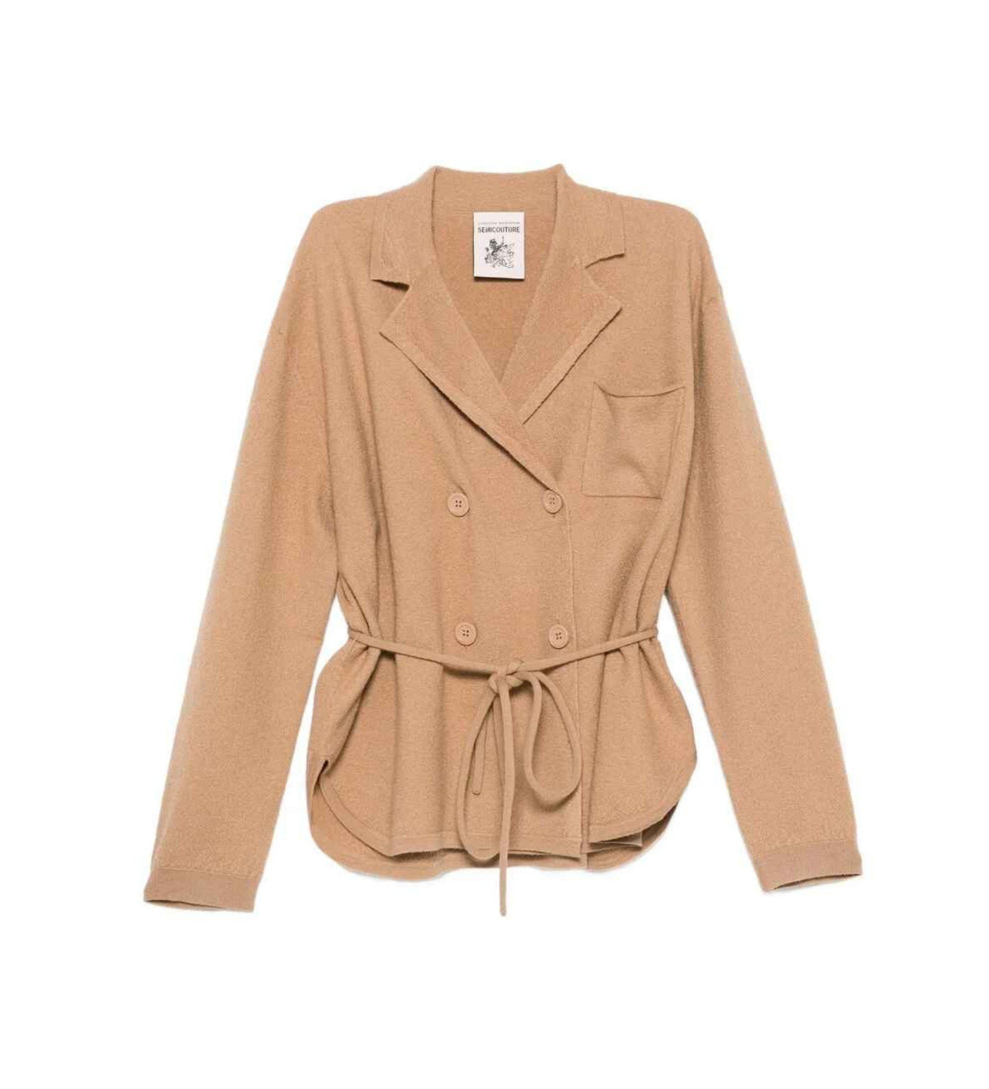 Eleganten in brezčasen suknjič iz kuhane volne z dvojno naramnico, ki je idealen za hladnejše mesece. Njegova zasnova z zavihki in pasom poudarja silhueto ter združuje klasični slog in funkcionalnost.