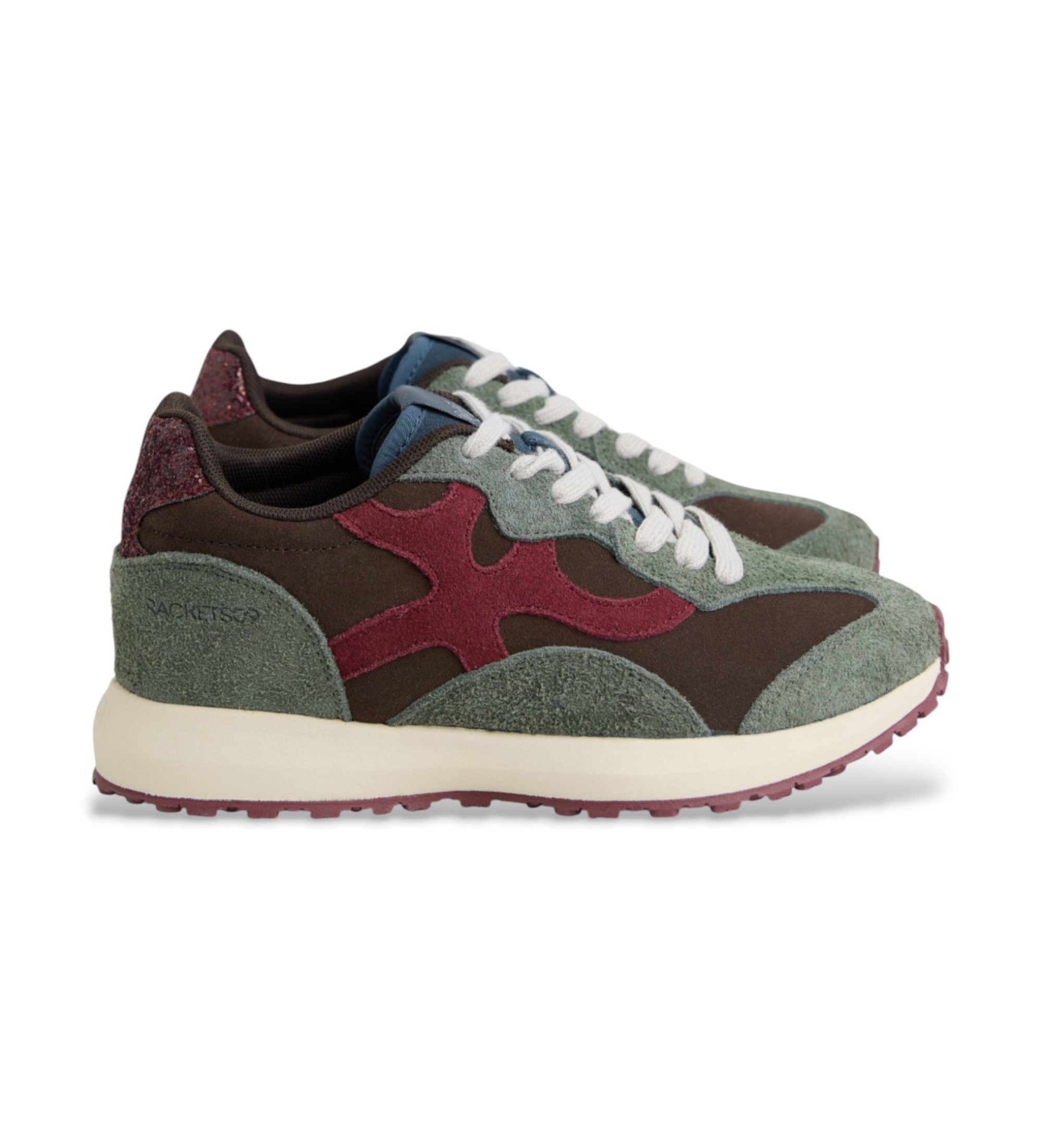 Ikonične športne copate iz cepljenega usnja. Odlikujejo jih vezalke v barvi ecru, modri usnjeni jezik z vgraviranim napisom "Silbon". Zeleno deljeno usnje za prst in peto ter bordo svetleča zgornja peta. Ima podrobnosti bordo stranske raketiranke. Rjava tekstilna podlaga, udoben gumijast podplat in mehka usnjena podloga. Ima rezervne vezalke v bordo barvi.