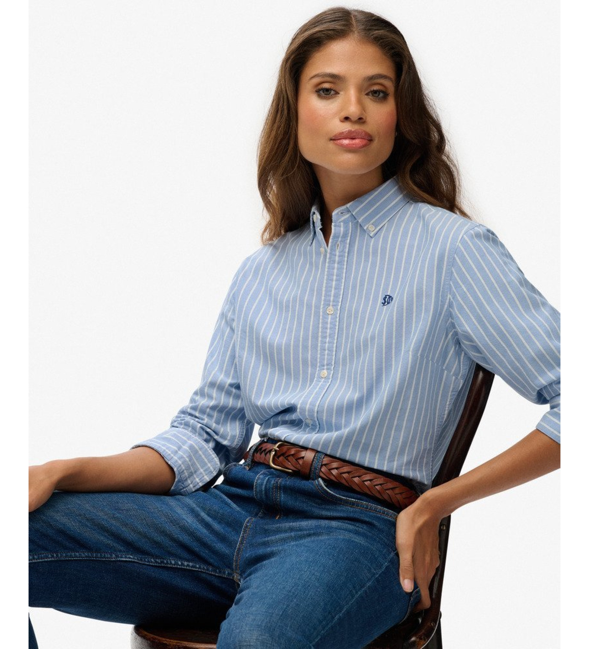 Ženska srajca oxford z gumbom navzdol vitkega kroja v modri barvi.