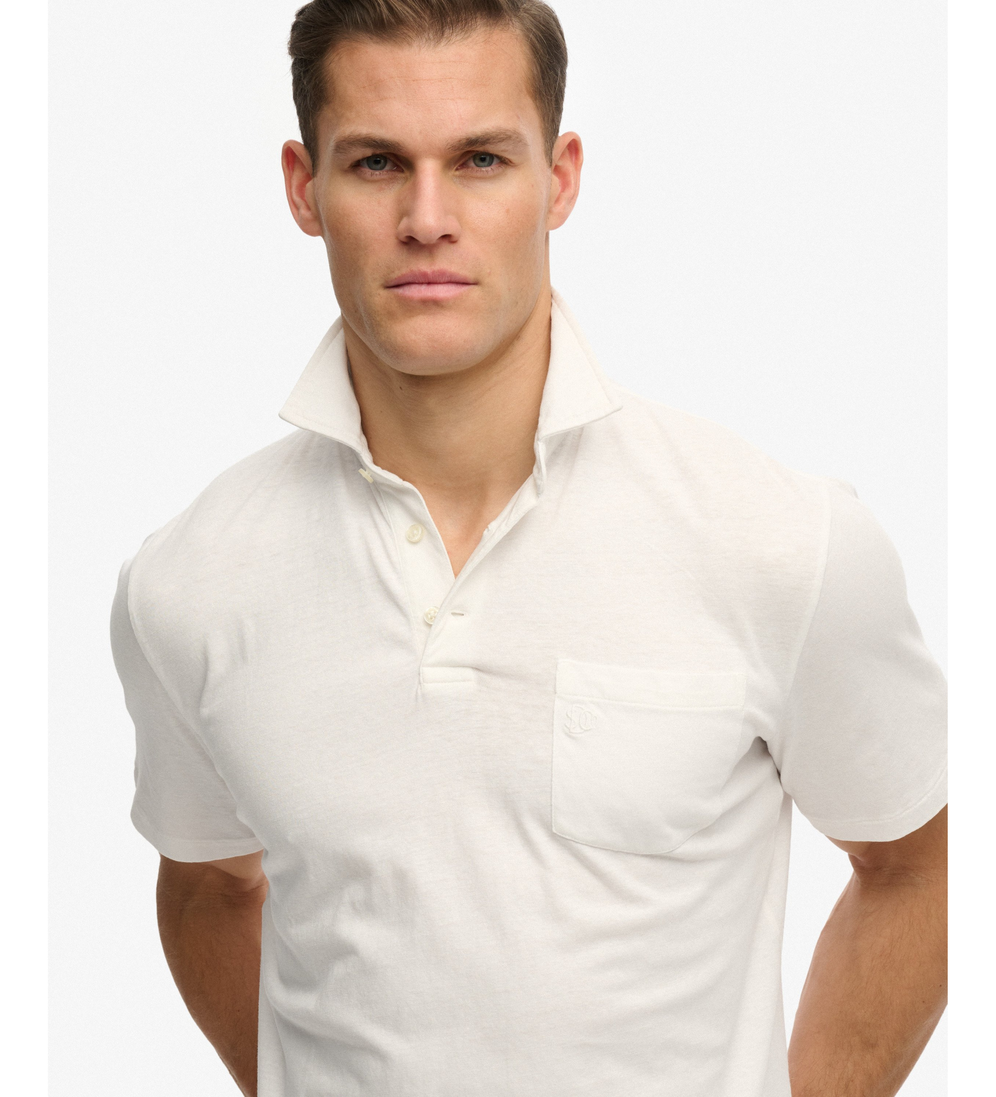 Superdry Polo Classic Bombažno laneno platno iz bele barve