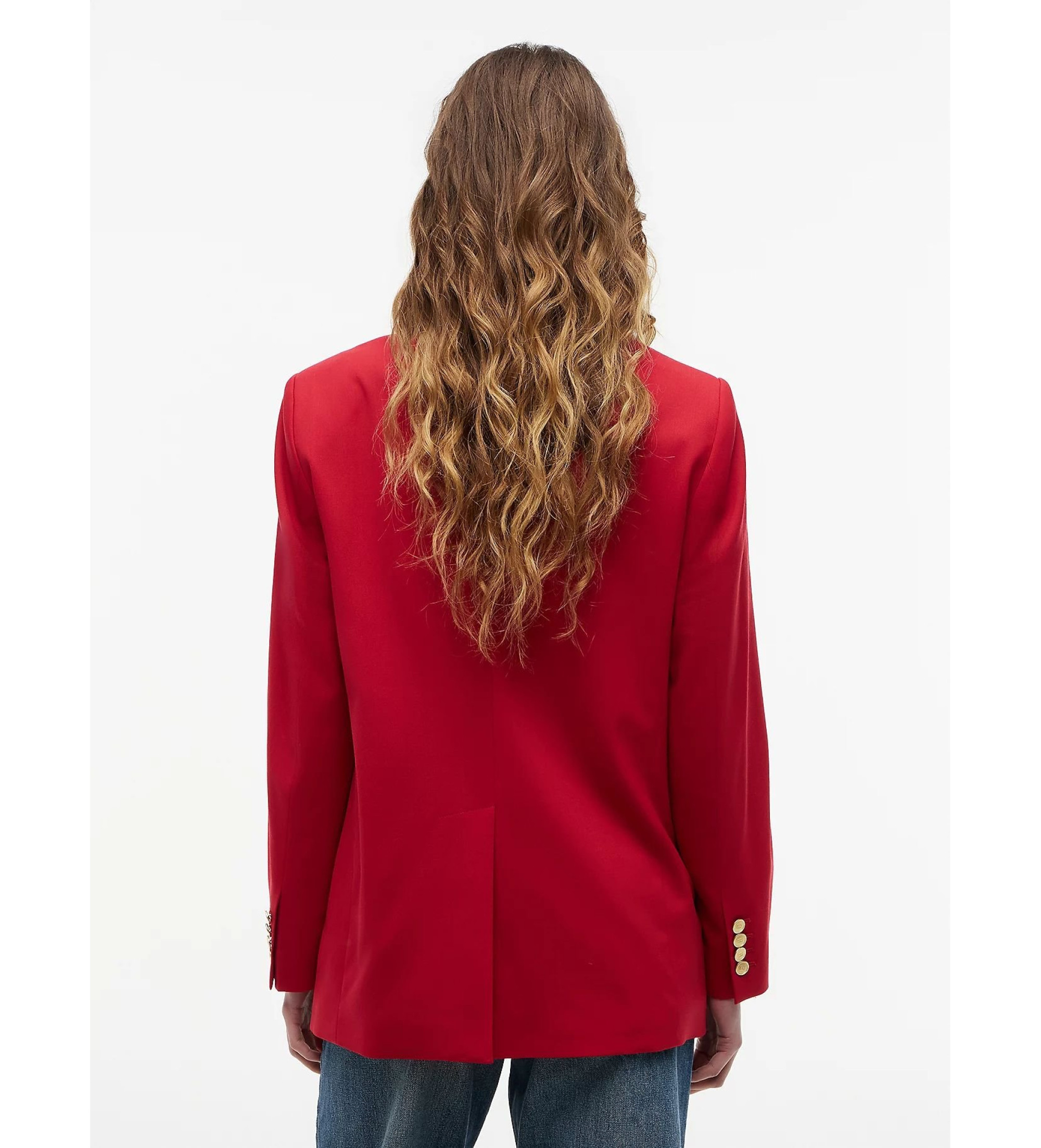 Ta prefinjen dvonadstropni suknjič iz fine elastične volnene mešanice ima značilne gumbe v zlati barvi.