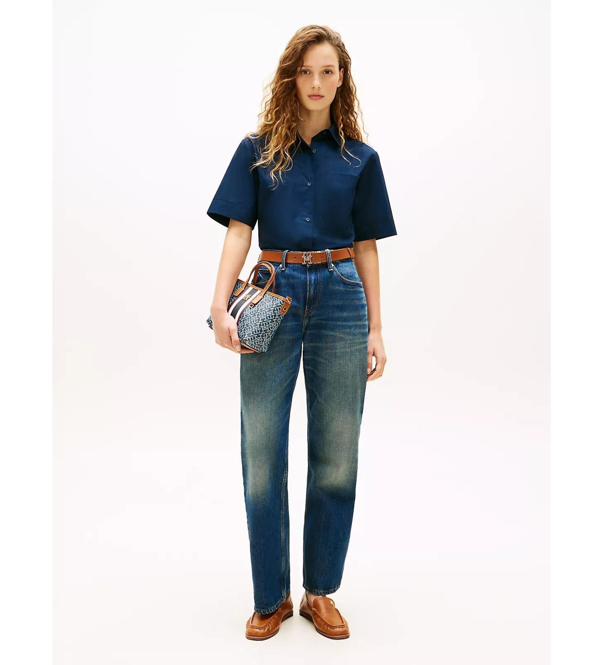 Torbica Tommy Hilfiger Mini Monoplay v modri barvi, kompaktne in funkcionalne oblike. Praktična in vsestranska, idealna za prenašanje osnovnih stvari s sodobnim pridihom.