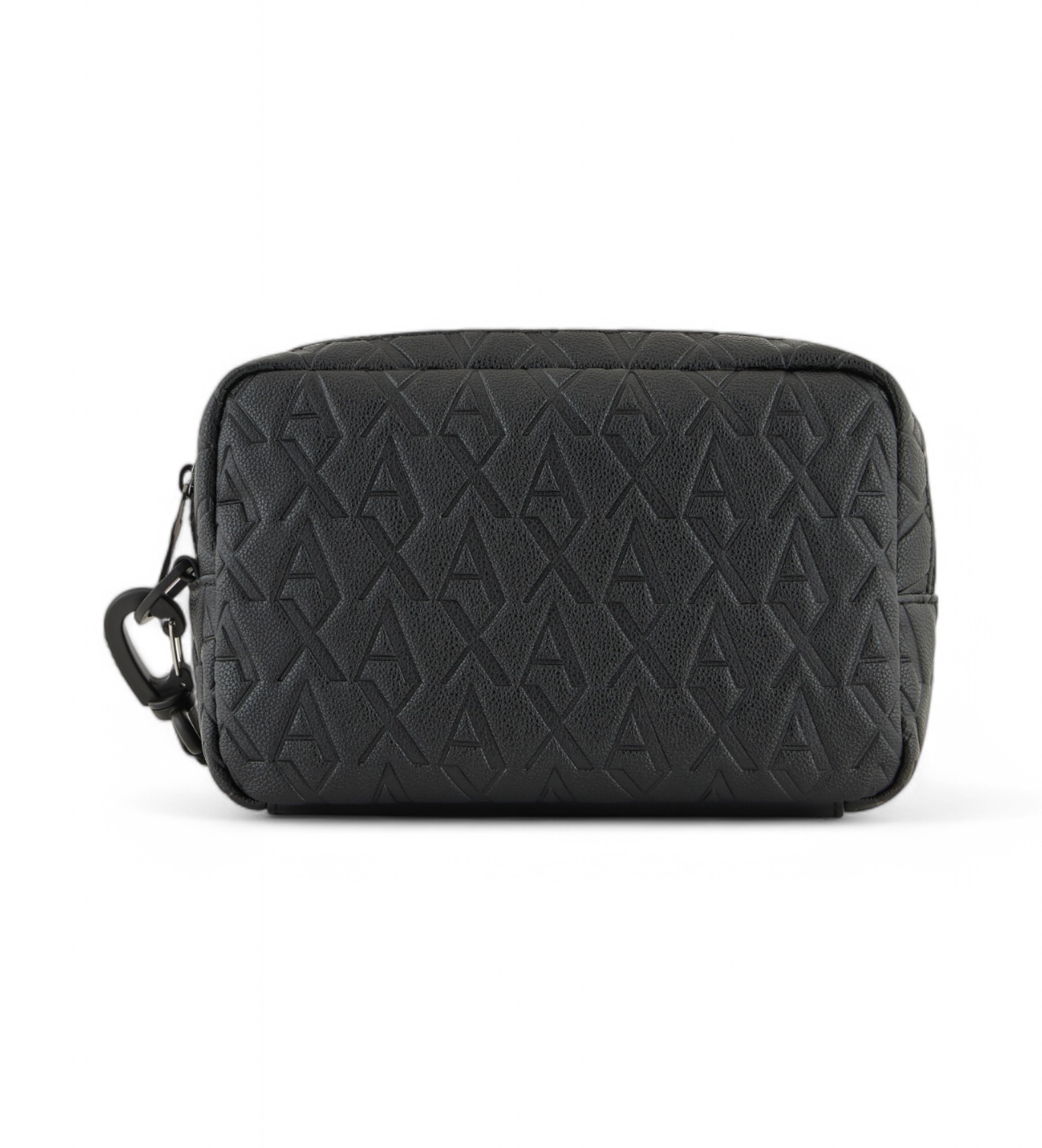 Handväska i slitstarkt material med ton-i-ton-präglad logotyp, dragkedja och avtagbar handledsrem.