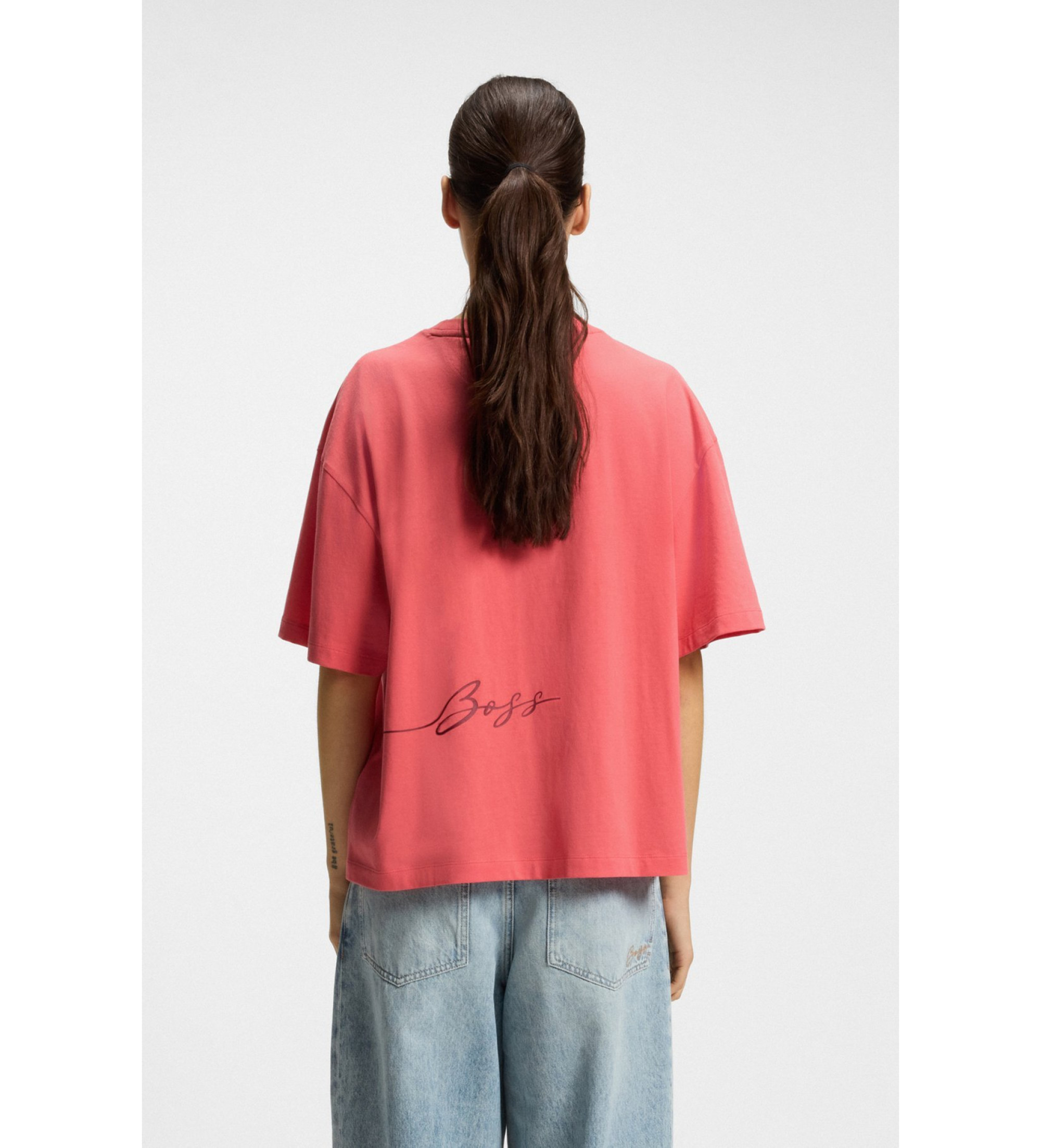 Denna överdimensionerade BOSS Womenswear T-shirt med distinkt logotypgrafik är ett innovativt val för en avslappnad stil. I bomullsjersey med mockaliknande känsla.