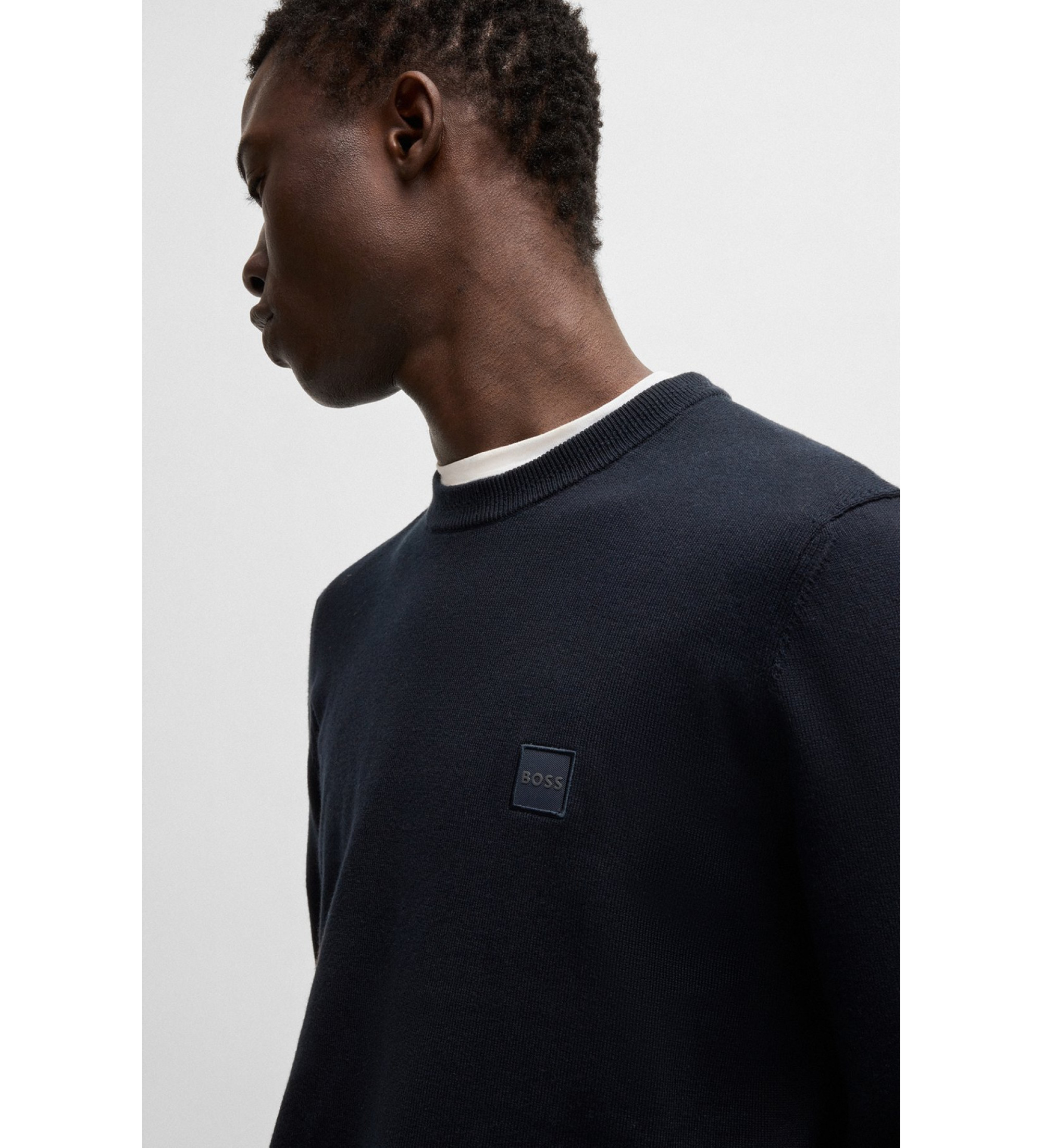 Denna BOSS Menswear-jumper är utsmyckad med en logopatch och stickad i bomulls- och kashmirgarn för vardagslyx. Rak, bekväm passform.