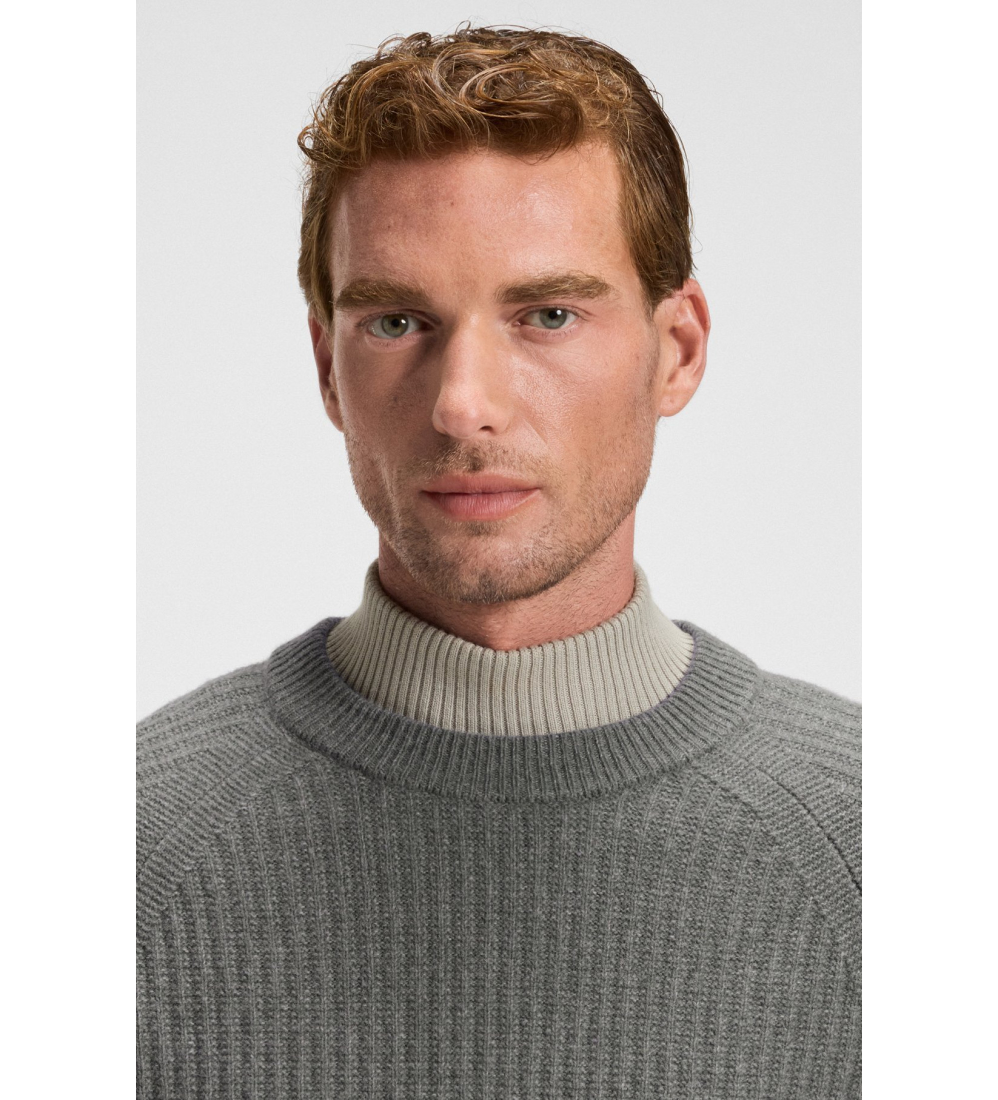 Den grå Klacier-pullovern är en avslappnad herrtröja som passar för alla tillfällen. Designen har en ribbad textur som ger en touch av sofistikering och värme, perfekt för de kallare månaderna. De långa ärmarna ger perfekt täckning och komfort hela dagen. Den högkvalitativa sammansättningen garanterar en bekväm och långvarig passform.