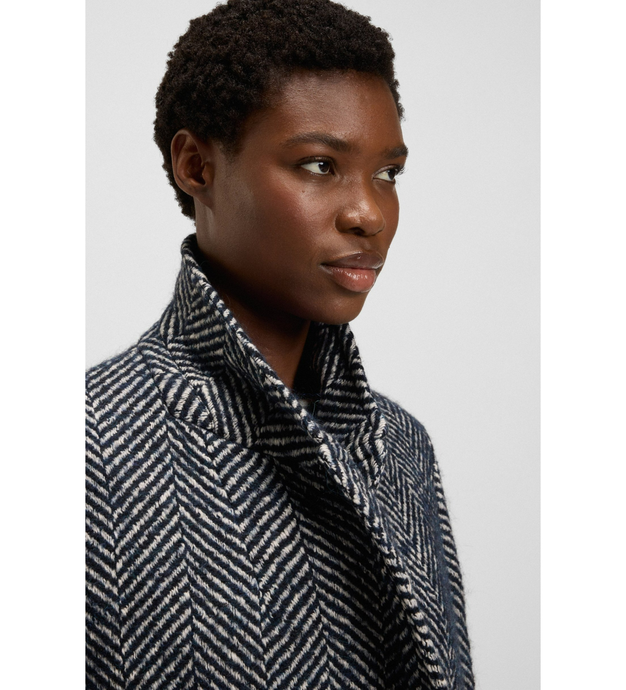 Denna klassiska crossover-silhuett från BOSS Womenswear har uppdaterats med en sofistikerad, överdimensionerad fiskbensmönstrad design. Mjuk ull och bomull.