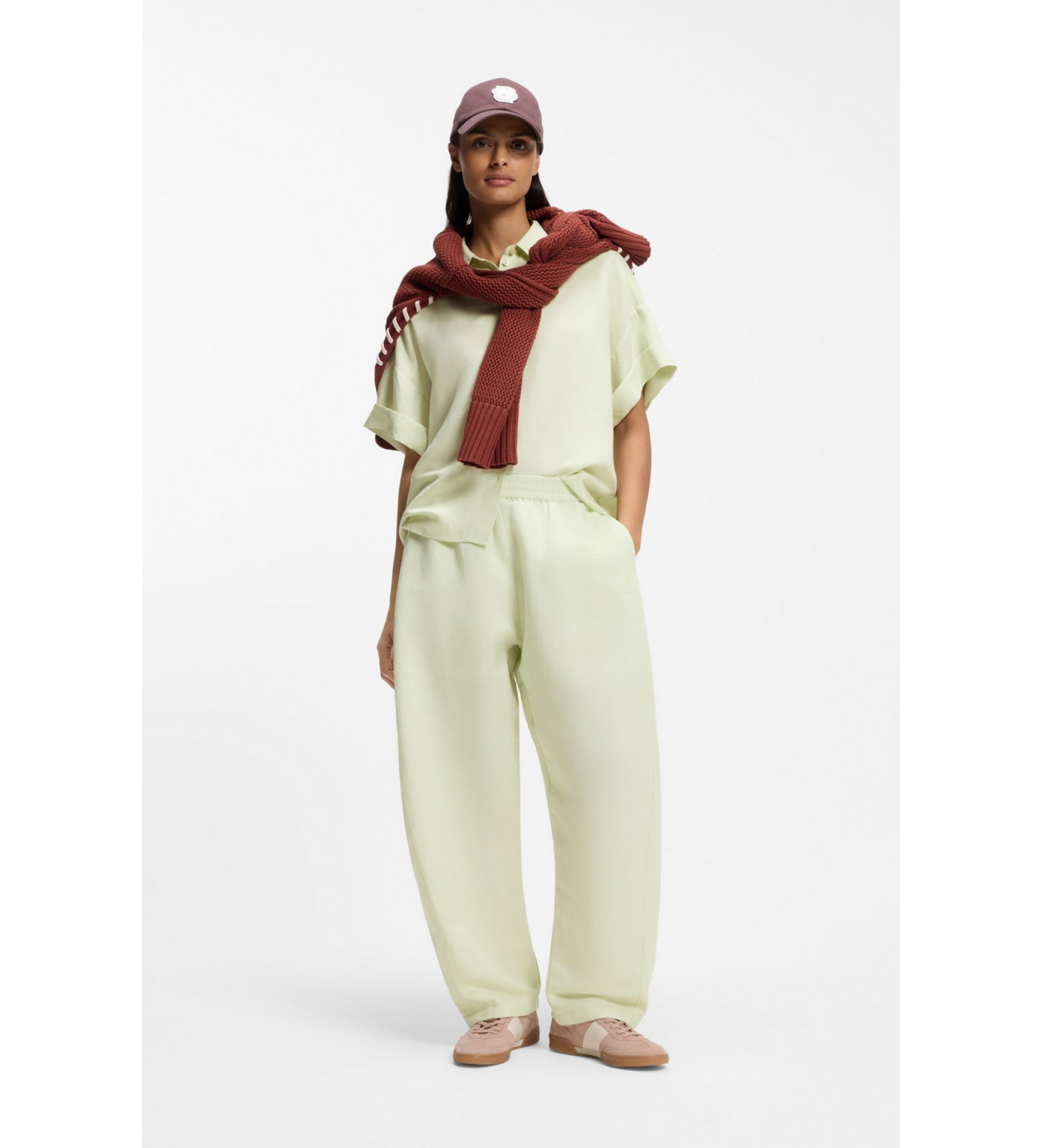Skapa en vardaglig look i en nyckelsilhuett med dessa byxor från BOSS Womenswear. Vida, ballongformade ben och resår i midjan. Blandat med linne.
