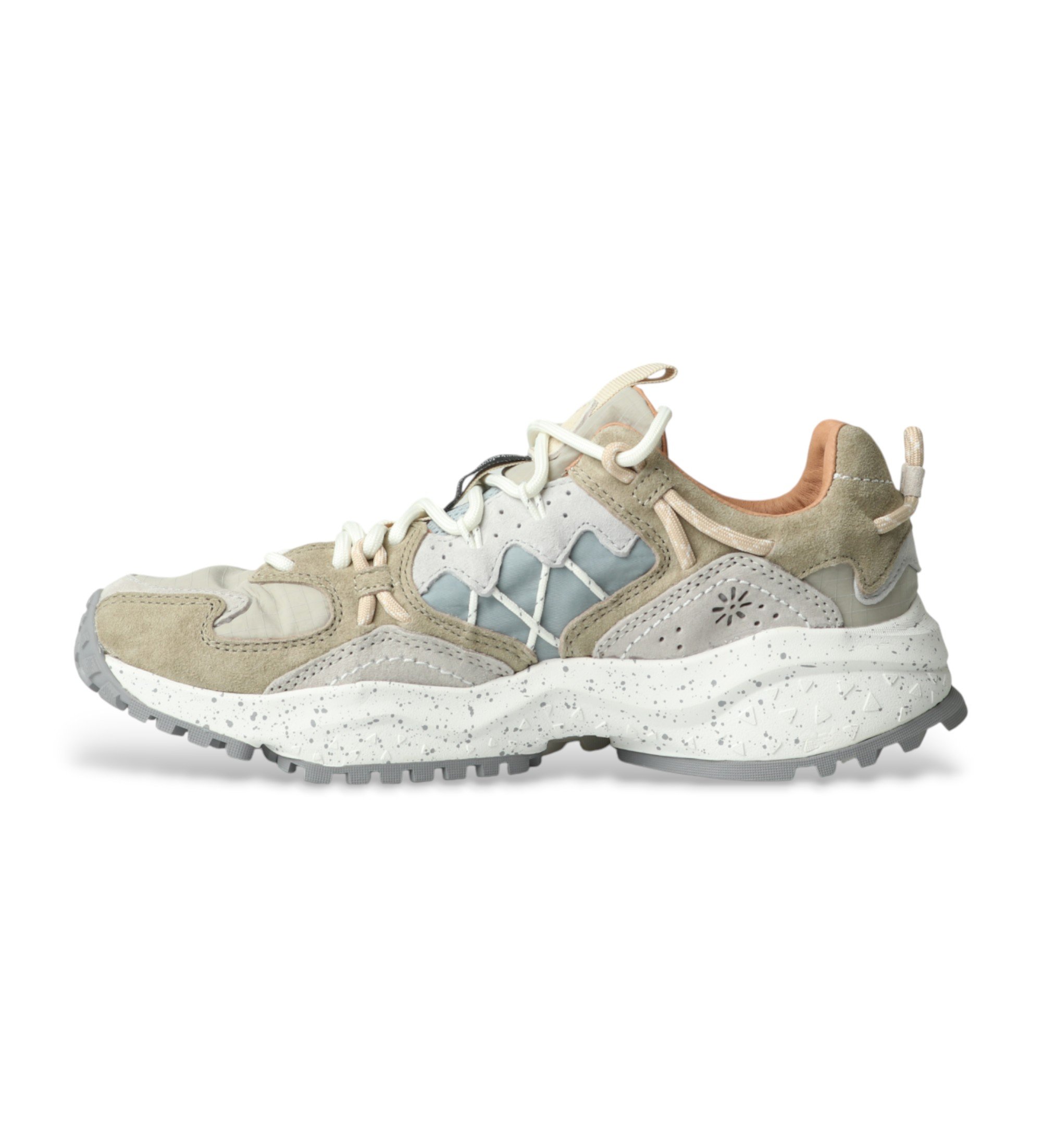 Träningsskor i utomhusstil med ovandel i ripstop-tyg och formade mockainlägg i ton-i-ton mocka, bearbetade med overlay-teknik. Tubformade snören på sidorna skapar ett spel av öljetter i kontrasterande nyanser. Foder i läder och textil, anatomisk fotbädd av antibakteriell kork. Konturerad gummisula med tandat mönster.