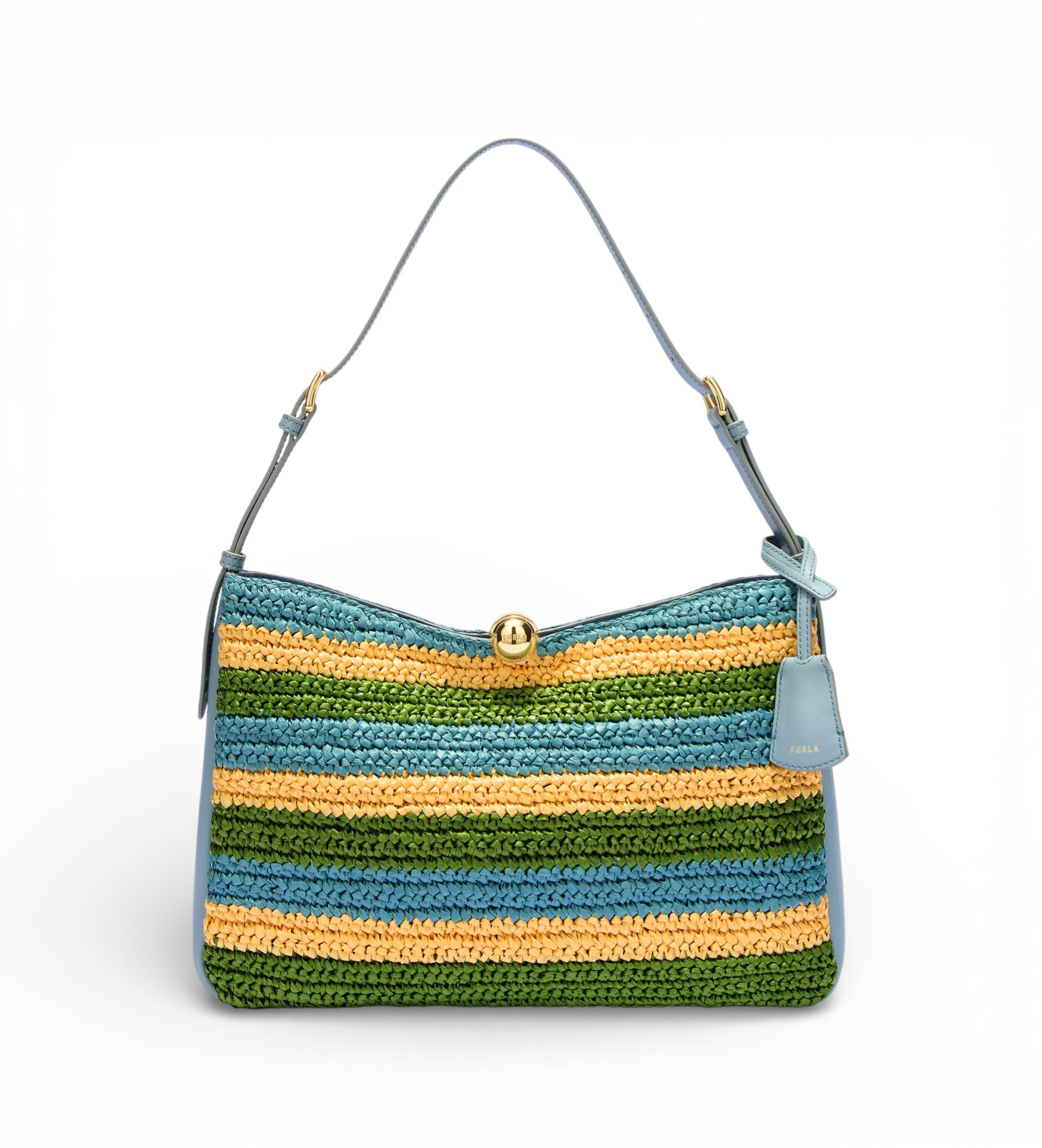Furla Sfera Mjuk axelremsväska med flätad design och flexibel silhuett, perfekt för att följa med avslappnade utseende med en sofistikerad touch. Dess lätta och bekväma format gör den till den perfekta allierade för vardagsbruk.
