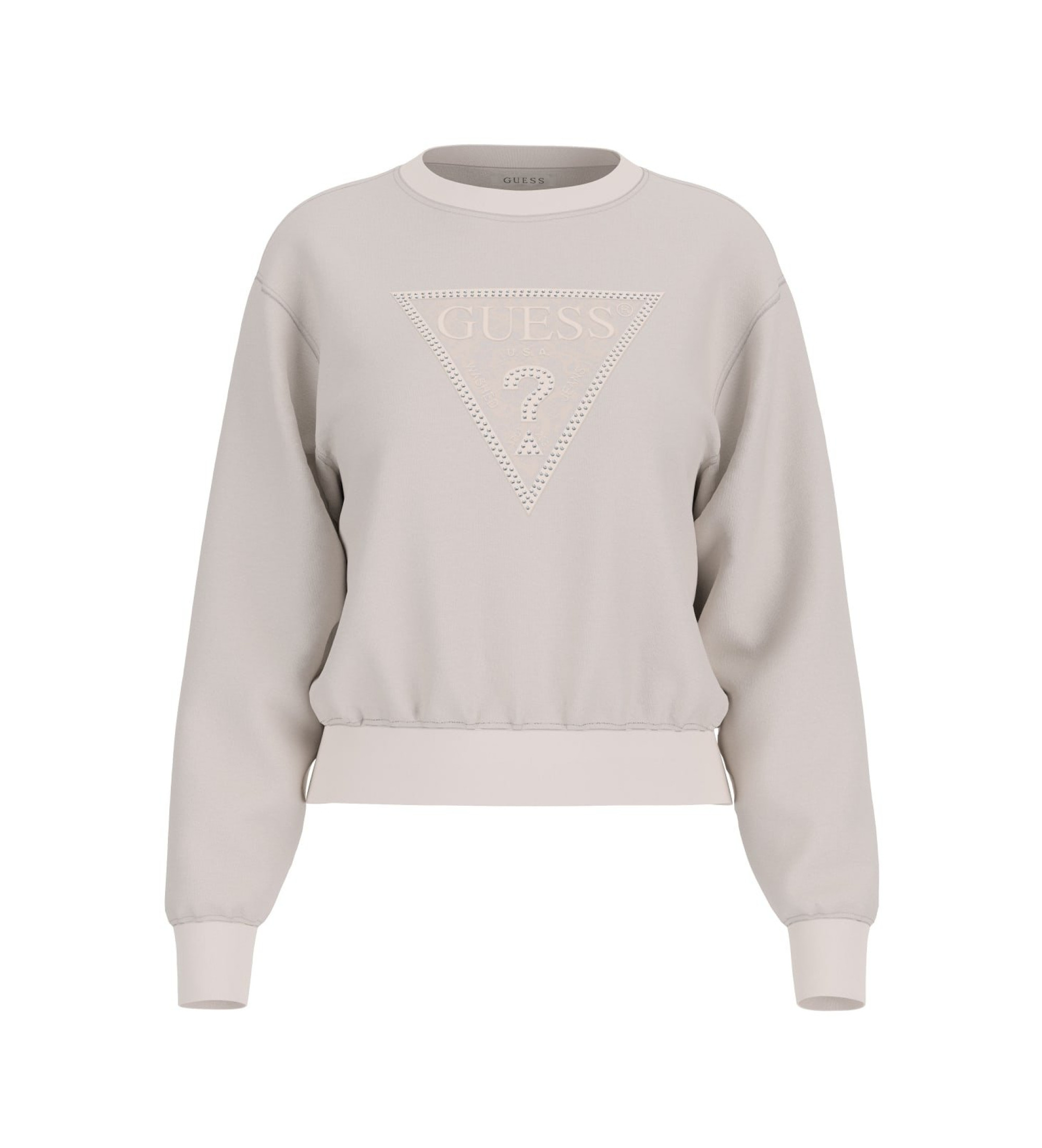 Den här moderna och mångsidiga Guess-sweatshirten är det perfekta sättet att komplettera en avslappnad look med en sofistikerad twist. Den ikoniska triangulära präglade logotypen är utsmyckad med små, glänsande detaljer som ger en touch av ljus och personlighet till ensemblen.