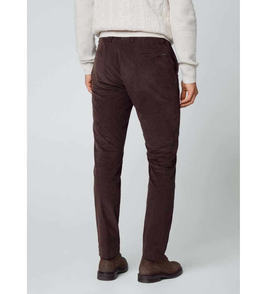 Sammetbyxor i ren bomull med subtil textur och alla detaljer för formell styling.