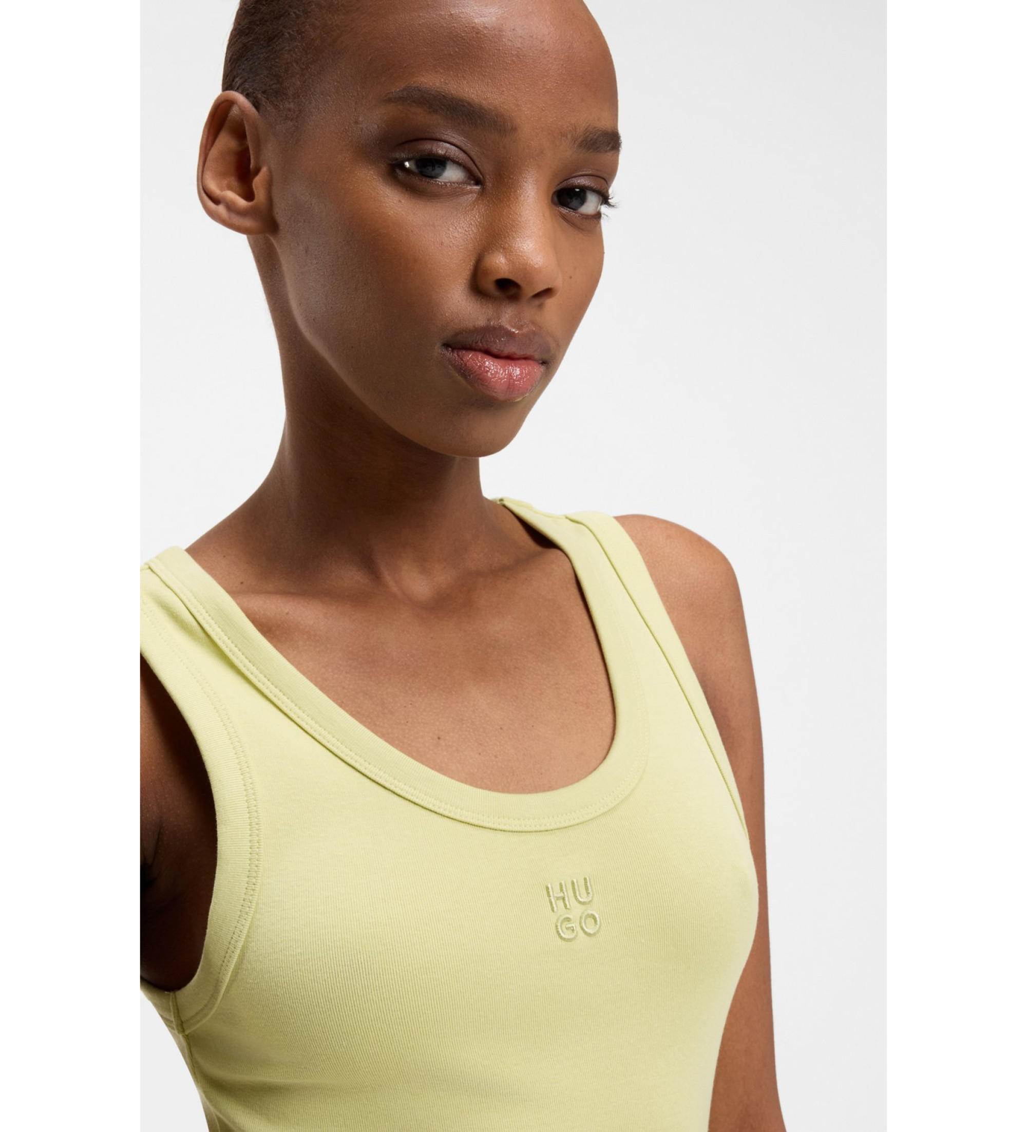 Denna smickrande axelbandslösa klänning från HUGO Womenswear har en figursydd, ribbad design och en broderad logotyp. Bomullsblandad jersey med stretch för komfort.