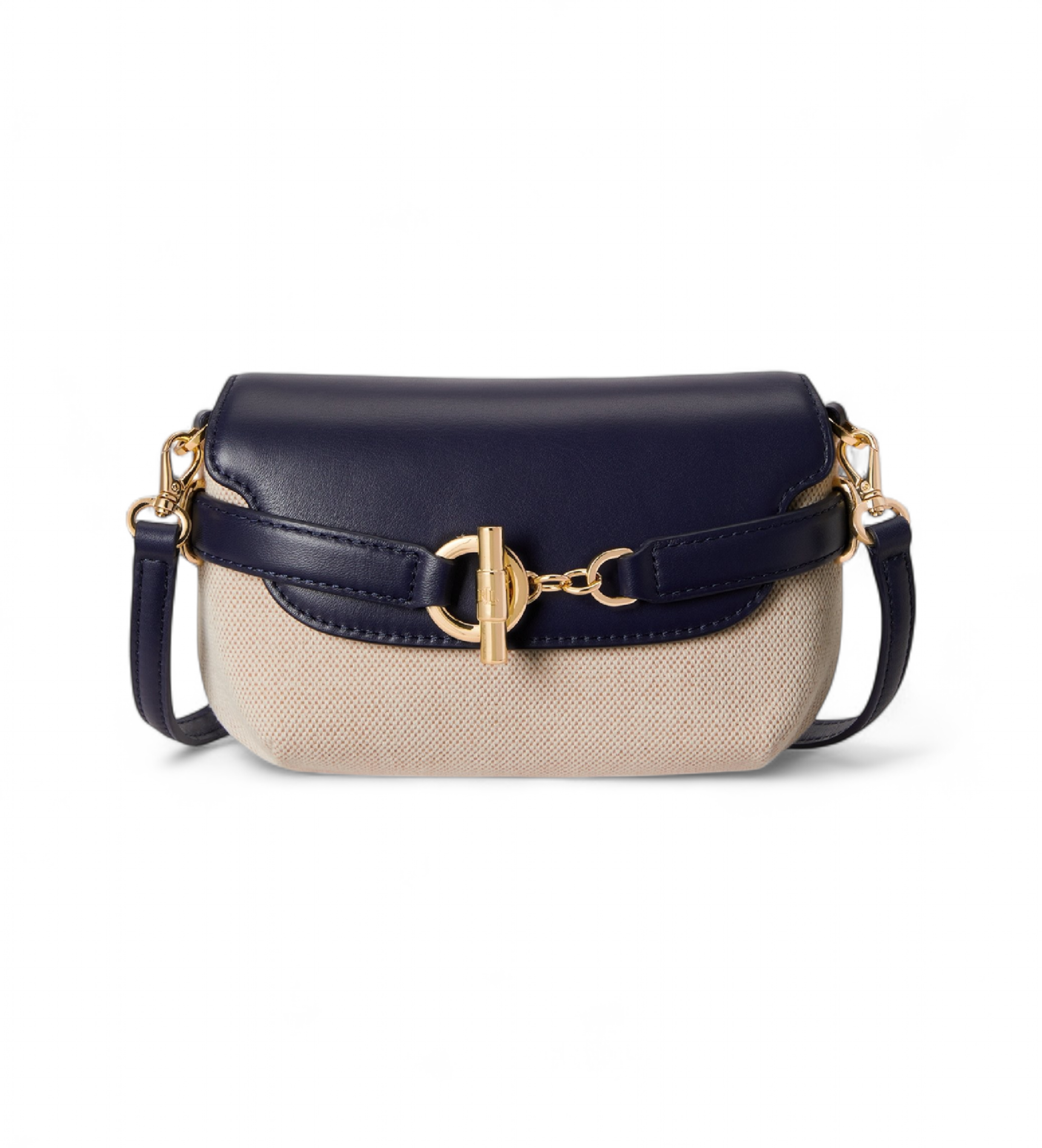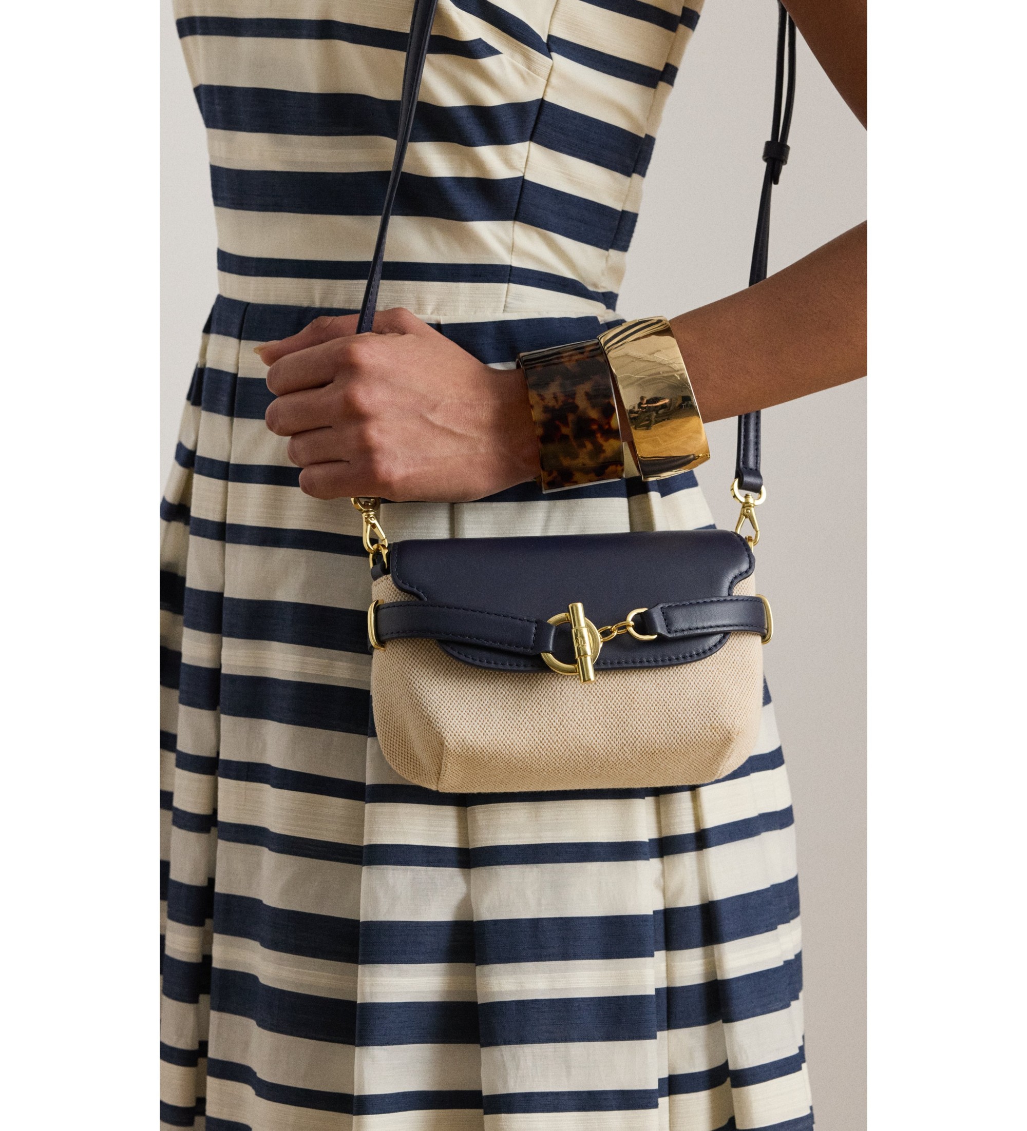 Den lilla Blaike-väskan har en dekorativ rem på framsidan och är designad med en avtagbar och justerbar axelrem som gör att den kan bäras över kroppen eller som en clutch. Denna lyxiga väska har en böjd, kompakt design som är perfekt för att bära små nödvändigheter och är tillverkad av en kombination av texturerad canvas med en speciell färg för en tvåfärgad effekt och mjukt fullkornsläder som kännetecknas av sin naturligt släta finish.