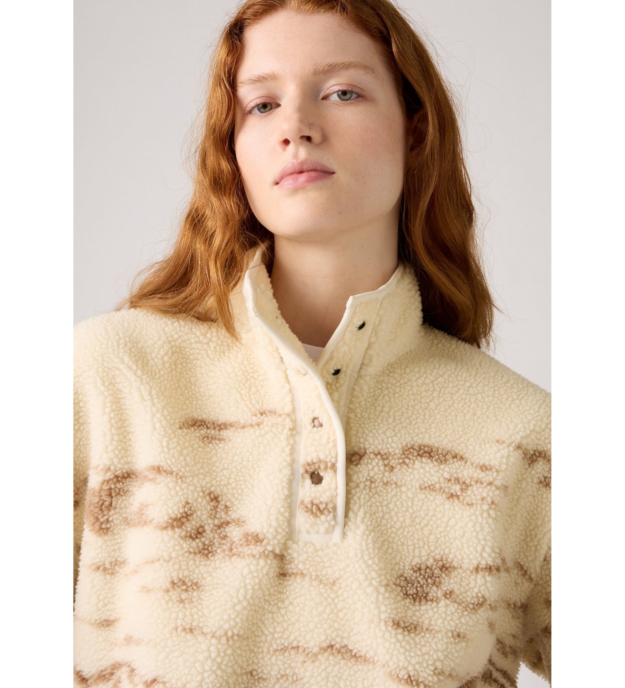 Vår Kasey Sherpa-pullover kan inte bli bekvämare tack vare sin ståkrage med knappslå, bekväma standardpassform och varma fleecedesign.