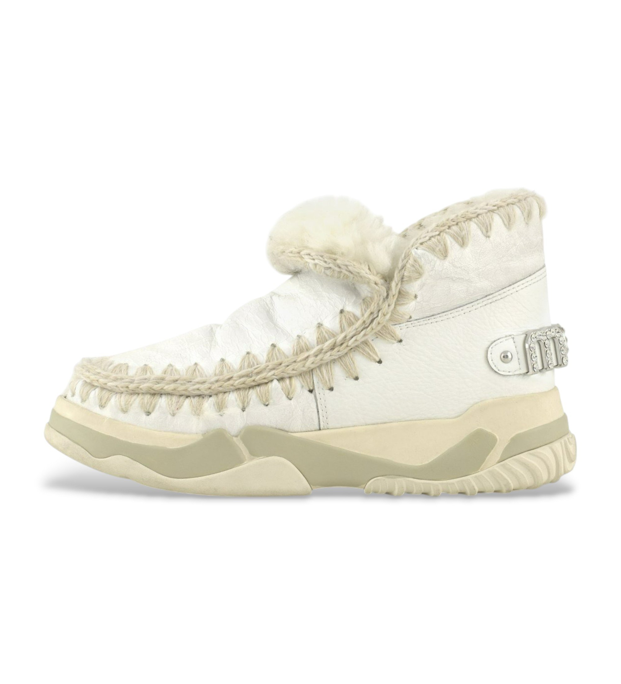 eskimåskor med strasslogotyp tillverkade av dubbelsidigt fårskinn och utsmyckade med karakteristiska sömmar i mou-ull. Det stödjande hälstödet och den lätta EVA-yttersulan gör den här modellen otroligt varm, bekväm och slitstark. Höjd 14,5 cm.