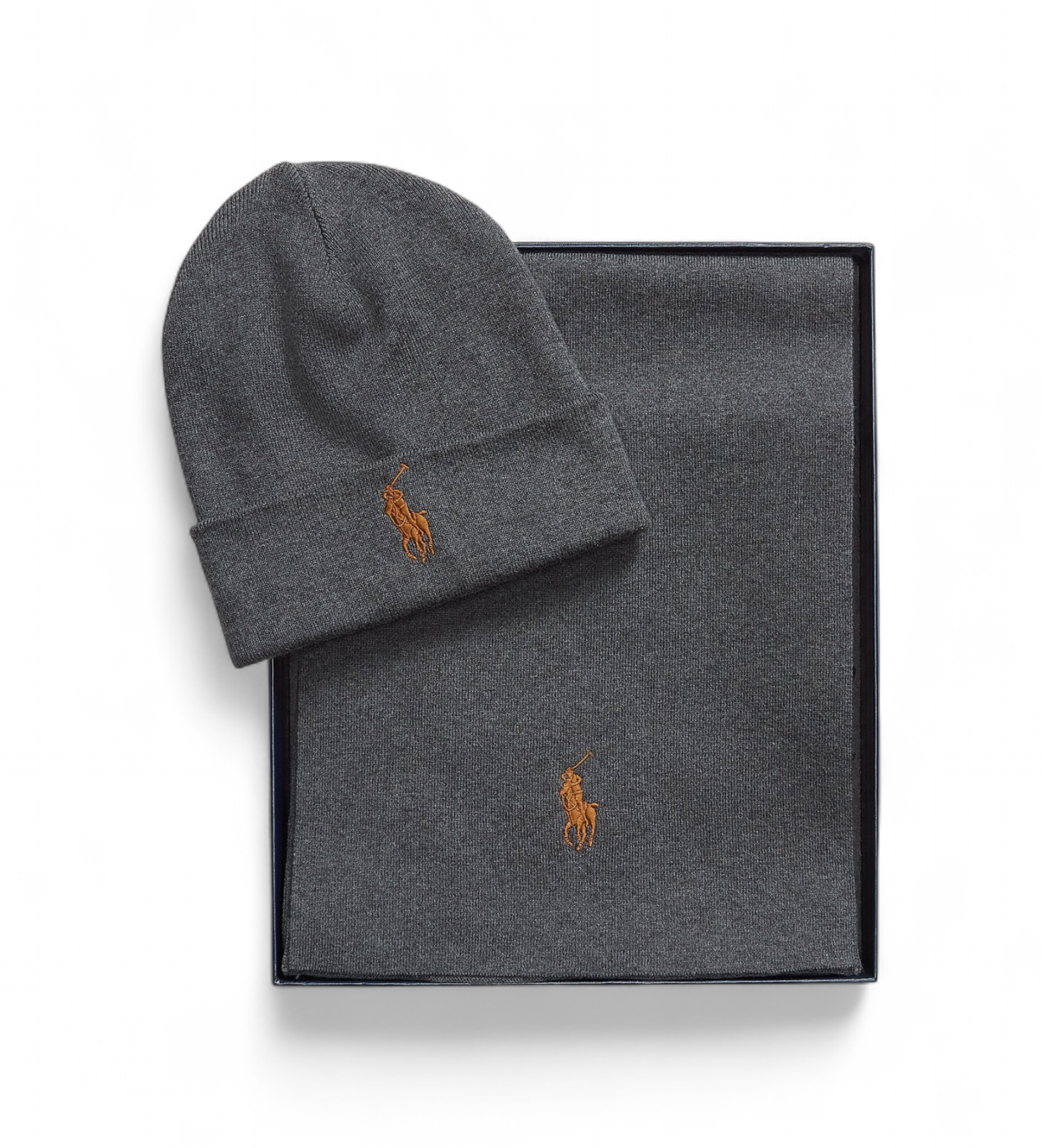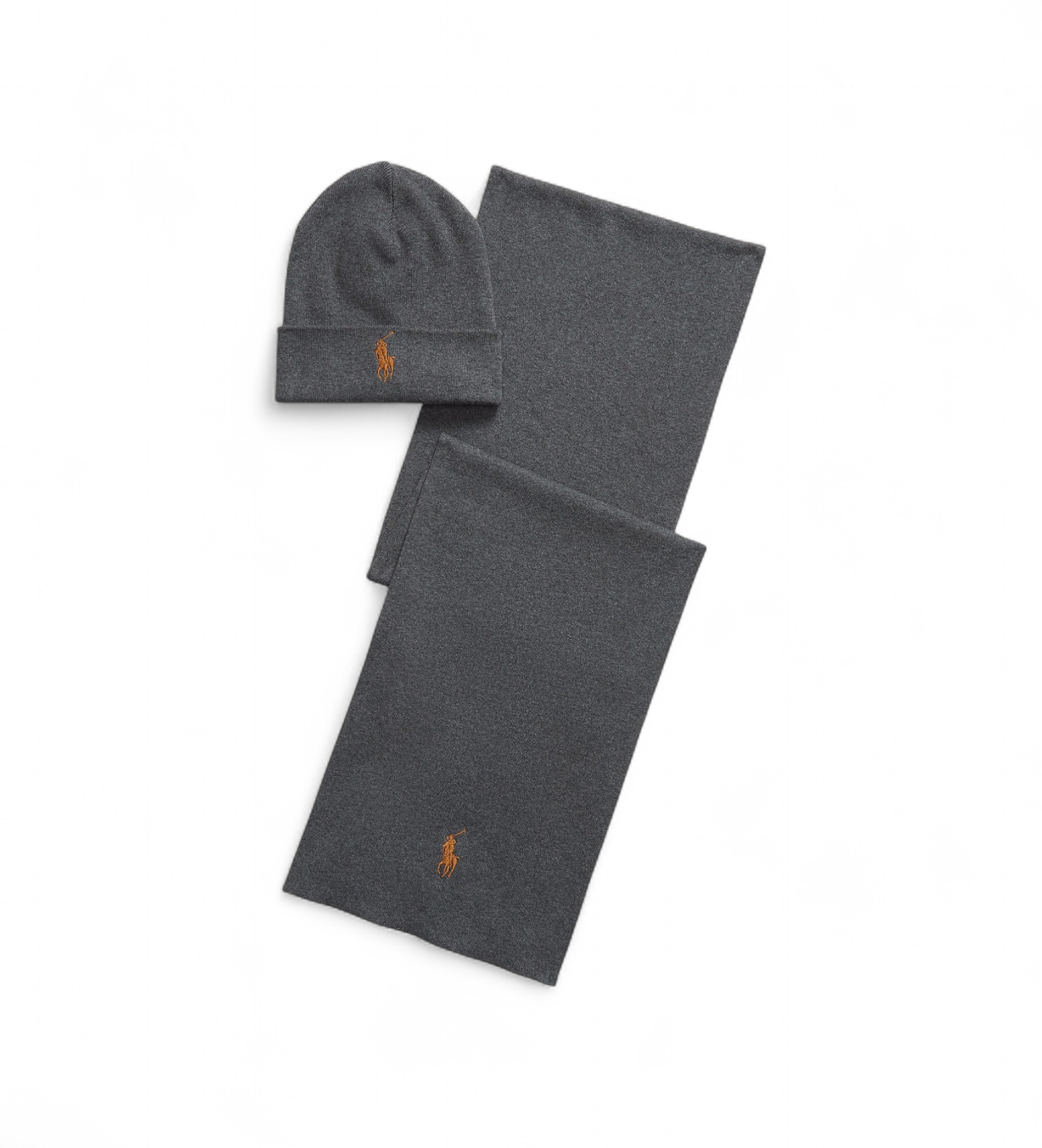 Mössan och halsduken i detta tidlösa presentset är stickade av kammad bomull i ribbstickning för överlägsen mjukhet och andningsförmåga och är dekorerade med Ralph Laurens karakteristiska broderade häst.