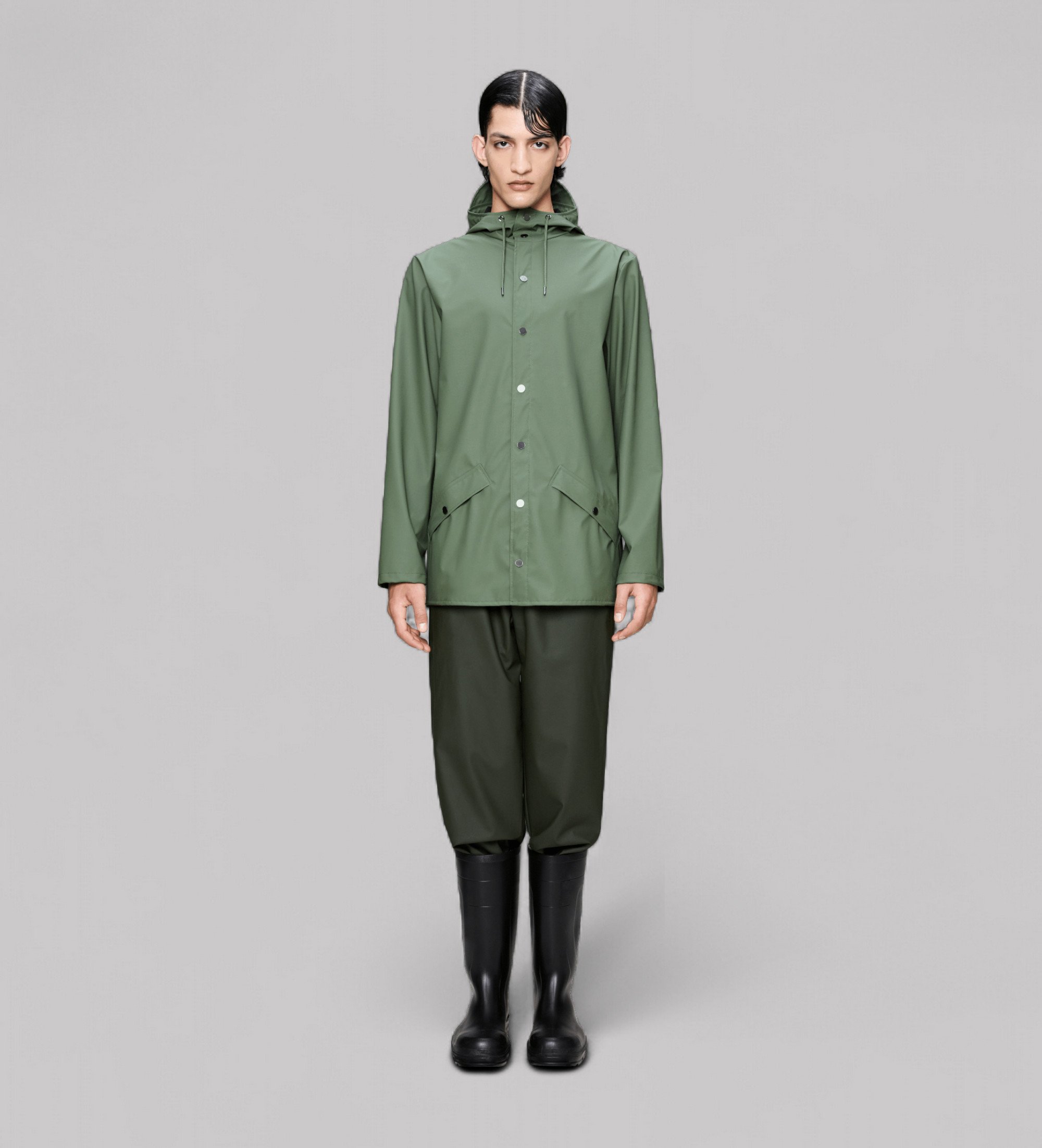 Jacket är en vattentät unisexjacka med en tidlös stil. Den kännetecknas av en minimalistisk silhuett som är mycket funktionell. Jackan har en knappslå med tryckknappar, huva med inbyggt visir och två sidofickor med tryckknappar. Ärmarna har tryckknappar som gör att ärmarna kan justeras för en lös eller instoppad passform. Det är en mångsidig design med en snygg drapering. Den här vattentäta unisexjackan är försedd med hål under armarna och ett bakstycke med dolda ventilationsöppningar för komfort och andningsförmåga.