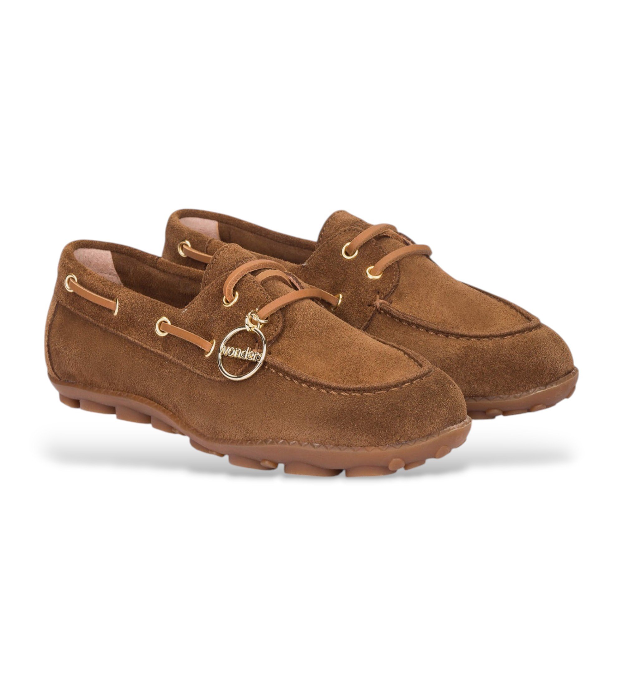 NYSA 04 båtskor tillverkade i brunt spaltläder. Modell med tidlös silhuett, mjuka linjer och rundad tå. Lädersnöret som löper runt skons kontur, tillsammans med guldfärgade metallöglor, förstärker den nautiska inspirationen och ger en subtil, elegant kontrast. Som en distinkt blinkning har den en metallberlock med Wonders-logotypen som ger personlighet och en modern touch utan att förlora sin nykterhet. Den flexibla karamellfärgade sulan har en relief av cirklar i olika storlekar som framkallar dynamik och ger grepp och stil. Dessutom anpassar sig den uttagbara MemoryGel-innersulan perfekt till foten och ger komfort i varje steg. Wonders arbetar för en ansvarsfull tillverkning som stöds av LEATHERWORKINGGROUP.